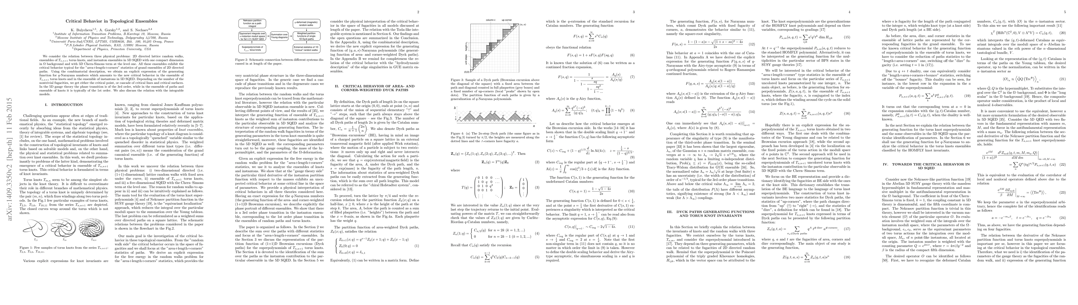 This study reveals new critical behavior in topological ensembles, bridging random walk theory, knot theory, and gauge theory, which could deepen our understanding of phase transitions and statistical mechanics in complex systems.