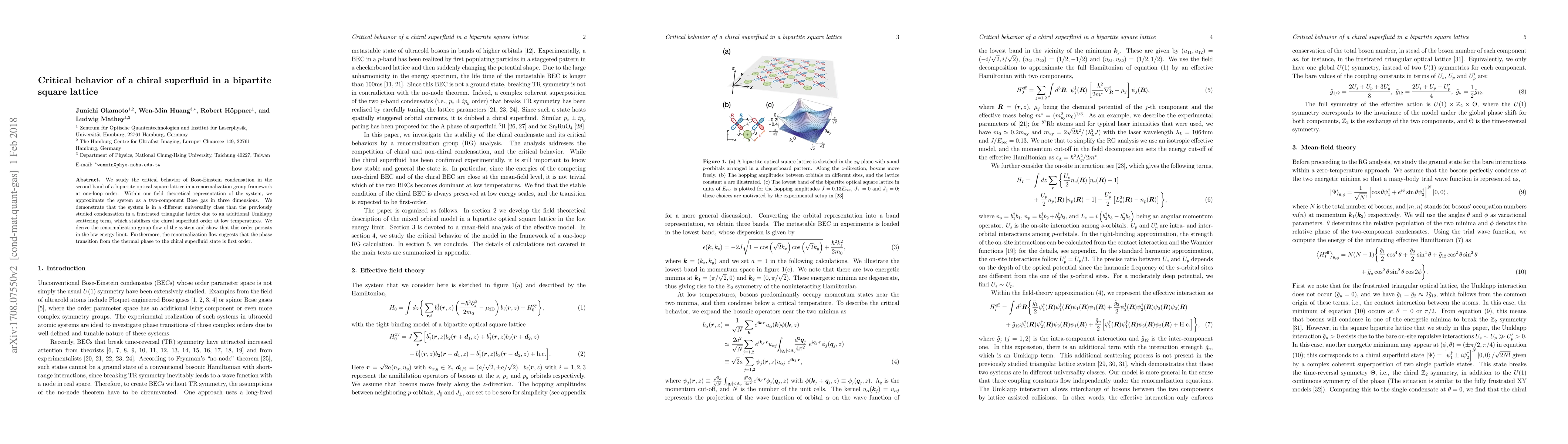 Researchers studied the behavior of a chiral superfluid in a specific type of crystal lattice and found it to be in a different universality class than previously thought, with a first-order phase transition from thermal to superfluid states.