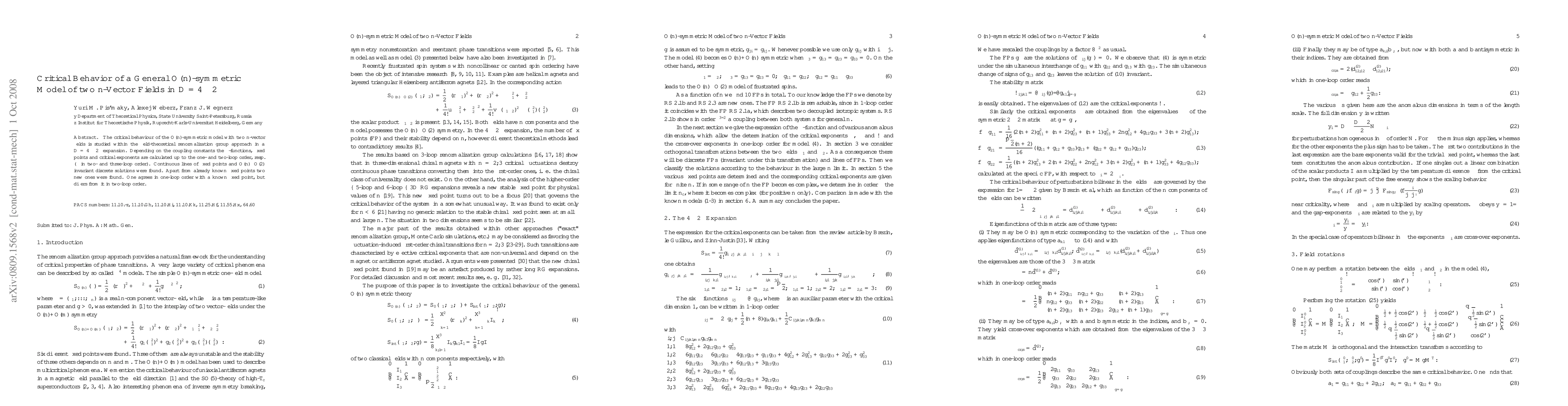 This paper investigates the critical behavior of an O(n)-symmetric model with two n-vector fields using the field-theoretical renormalization group in D=4-2 epsilon expansion. It identifies new fixed points and calculates beta-functions and critical exponents up to two-loop order, revealing continuous lines of fixed points and O(n)*O(2) invariant discrete solutions.