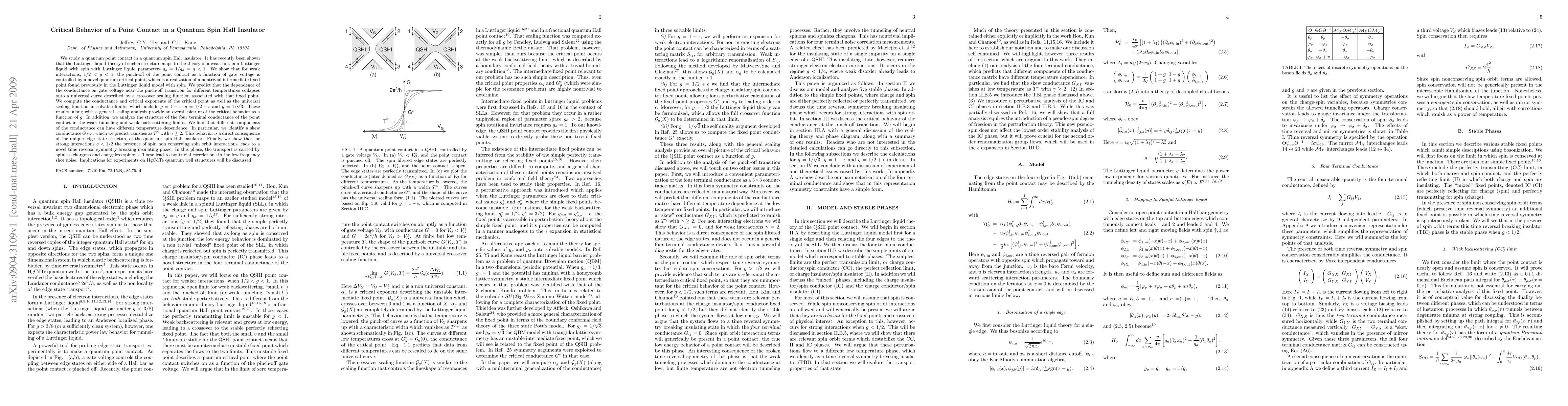 Researchers study a quantum point contact in a quantum spin Hall insulator and discover a novel quantum critical point that controls the pinch-off transition as the gate voltage changes. They predict that this behavior follows universal curves for conductance and scaling functions.