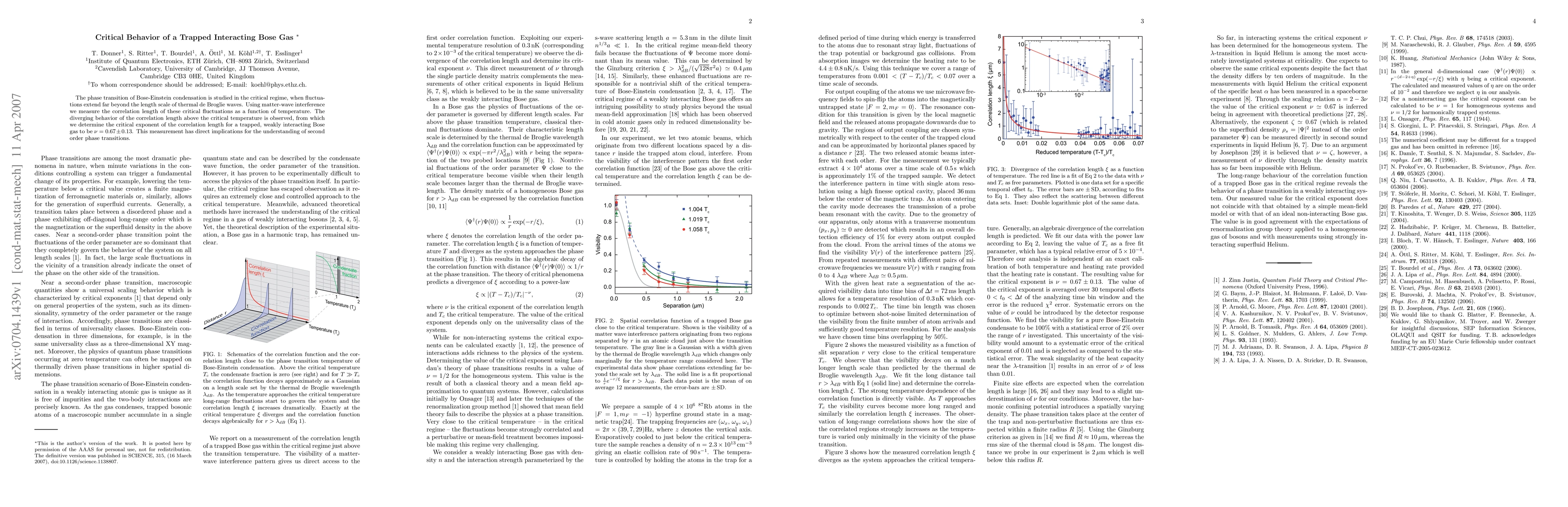 This study investigates the critical behavior of a trapped interacting Bose gas, revealing the diverging correlation length above the critical temperature and determining the critical exponent $\nu=0.67\pm 0.13$. These findings provide insights into second order phase transitions in condensed matter systems.