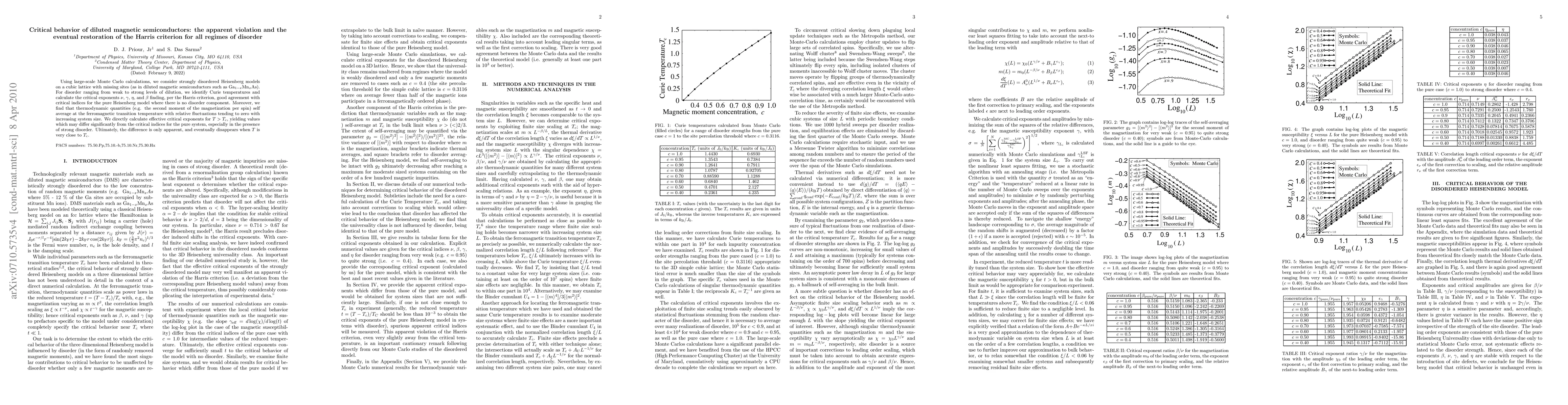 Using large-scale Monte Carlo calculations, we consider strongly disordered Heisenberg models on a cubic lattice with missing sites (as in diluted magnetic semiconductors such as Ga_{1-x}Mn_{x}As). For disorder ranging from weak to strong levels of dilution, we identify Curie temperatures and calculate the critical exponents nu, gamma, eta, and beta finding, per the Harris criterion, good agreement with critical indices for the pure Heisenberg model where there is no disorder component. Moreover, we find that thermodynamic quantities (e.g. the second moment of the magnetization per spin) self average at the ferromagnetic transition temperature with relative fluctuations tending to zero with increasing system size. We directly calculate effective critical exponents for T > T_{c}, yielding values which may differ significantly from the critical indices for the pure system, especially in the presence of strong disorder. Ultimately, the difference is only apparent, and eventually disappears when T is very close to T_{c}.