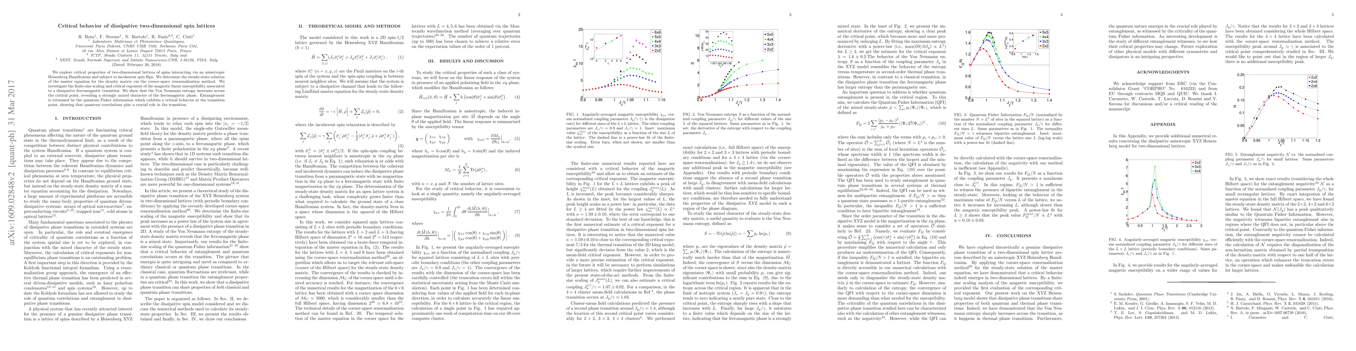 This paper investigates the critical behavior of dissipative two-dimensional spin lattices under anisotropic Heisenberg interactions and incoherent spin flips. The study reveals a mixed ferromagnetic phase with increased Von Neumann entropy at the critical point, and demonstrates that quantum correlations, indicated by the quantum Fisher information, are crucial for the transition despite the system's mixed state.
