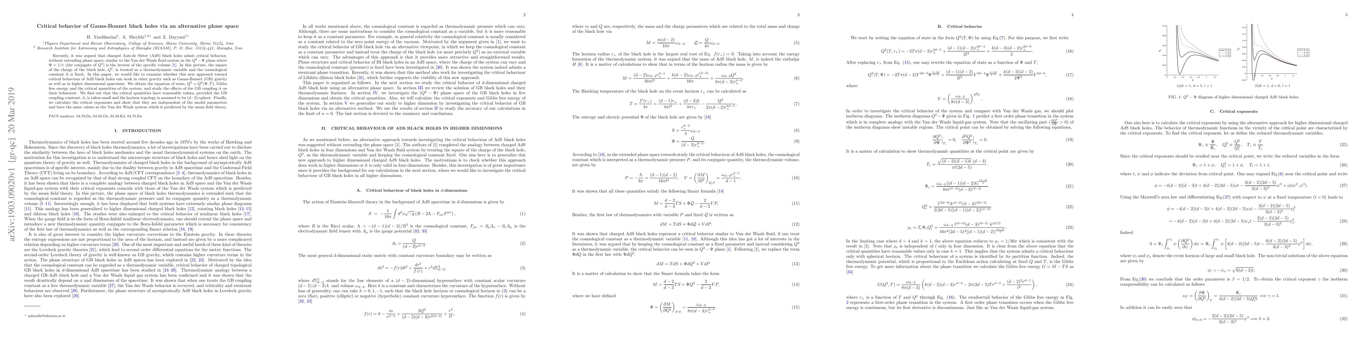 This paper explores the critical behavior of Gauss-Bonnet black holes in an alternative phase space, treating the square of the charge as a thermodynamic variable. It finds that critical quantities and exponents align with those of the Van der Waals fluid, provided the Gauss-Bonnet coupling constant is small.