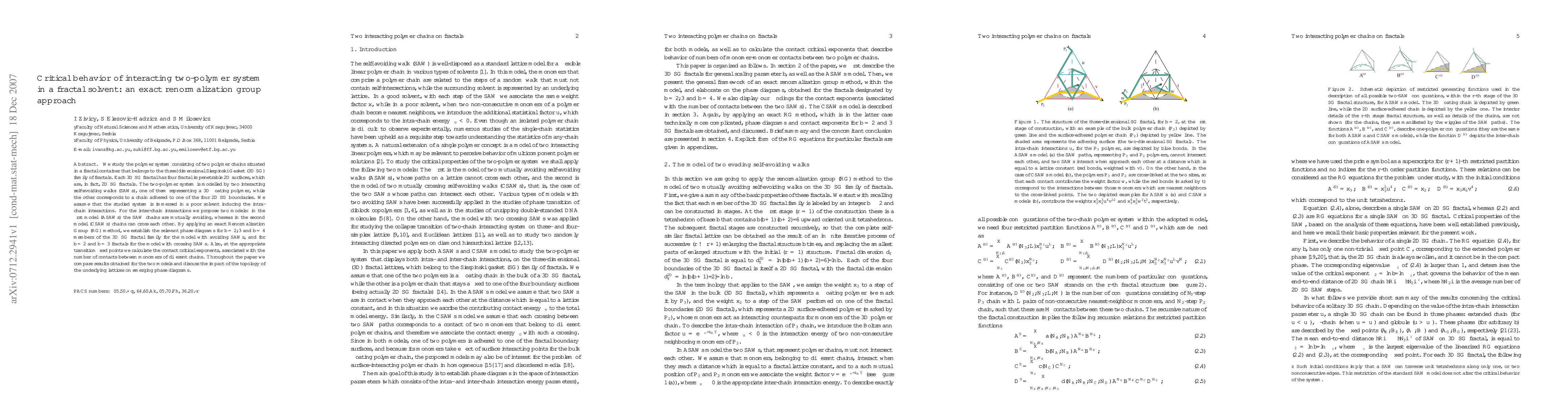 This paper investigates the critical behavior of a two-polymer system in a fractal solvent using an exact Renormalization Group approach. It models the system as two interacting self-avoiding walks in a three-dimensional Sierpinski Gasket fractal, exploring both mutually avoiding and crossing chain models. The study establishes phase diagrams and calculates critical exponents for different fractal dimensions.