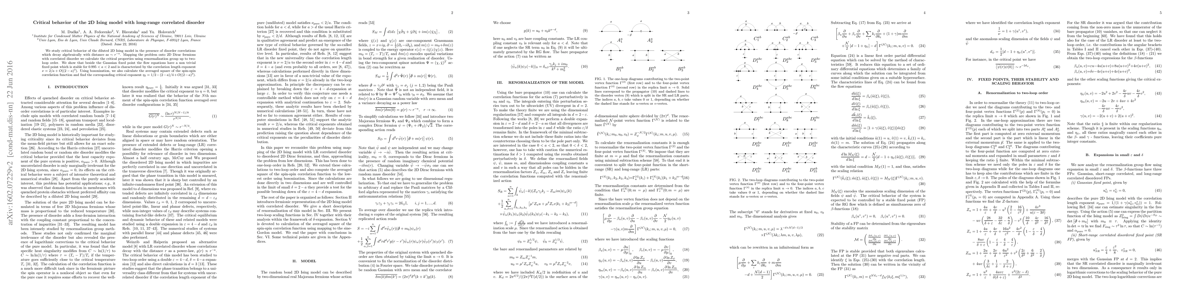 This paper investigates the critical behavior of the 2D Ising model with long-range correlated disorder, revealing a non-trivial stable fixed point for $0.995<a<2$ and deriving critical exponents $\nu$ and $\eta_2$ using renormalization group and bosonization techniques.
