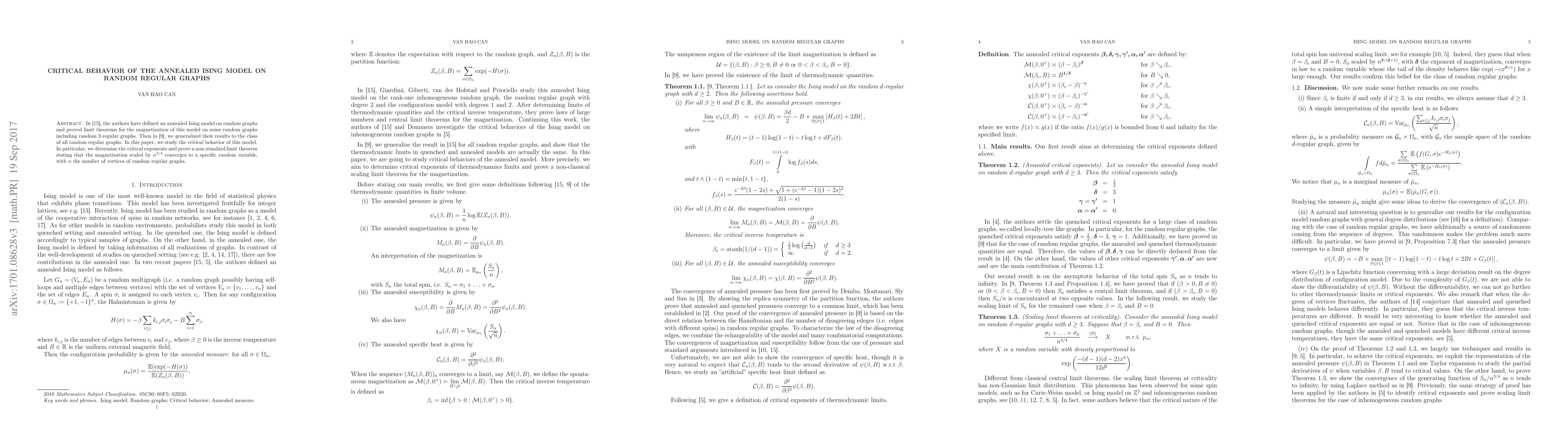 This paper examines the critical behavior of the annealed Ising model on random regular graphs, determining the critical exponents and proving a unique limit theorem for the magnetization scaled by \( n^{3/4} \) converging to a specific random variable as \( n \), the number of vertices, grows large.