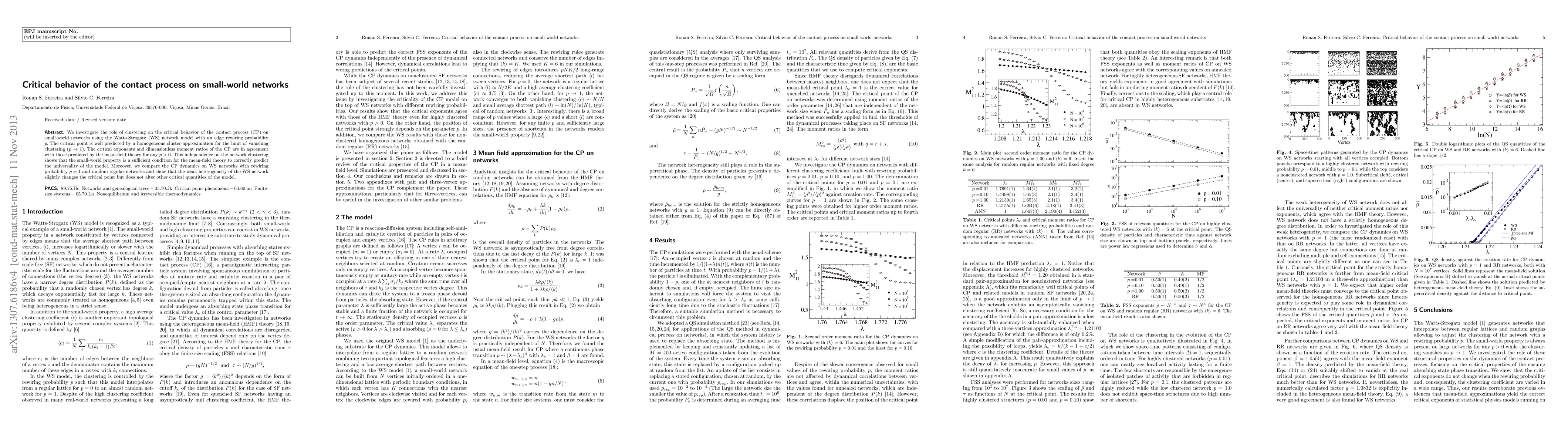 This paper examines the contact process on small-world networks, finding that mean-field theory accurately predicts critical behavior regardless of clustering, and that slight network heterogeneity due to small-world properties minimally affects critical quantities.