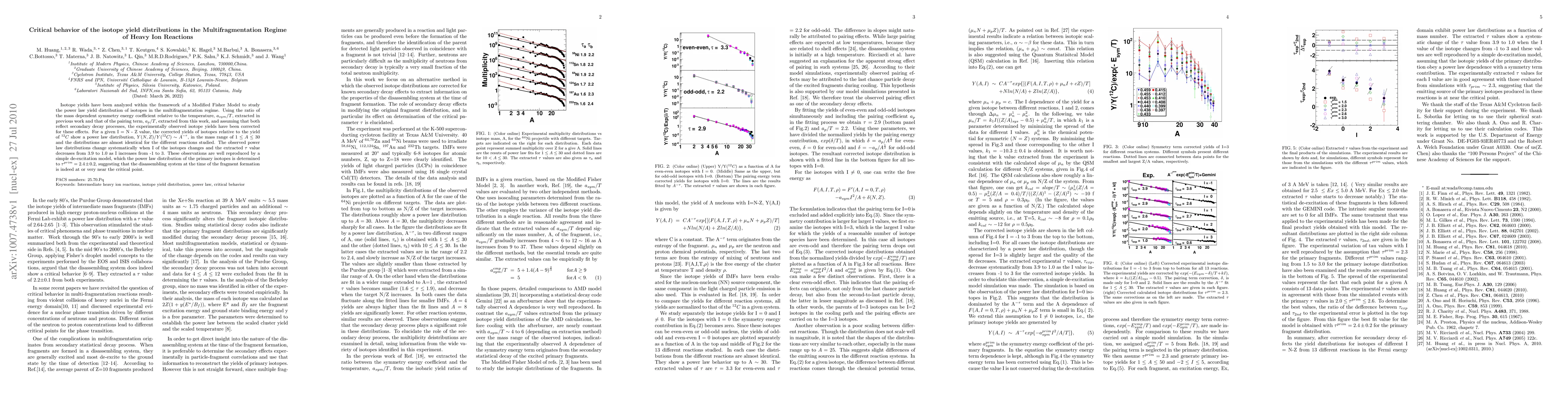 Isotope yields have been analyzed within the framework of a Modified Fisher Model to study the power law yield distribution of isotopes in the multifragmentation regime. Using the ratio of the mass dependent symmetry energy coefficient relative to the temperature, $a_{sym}/T$, extracted in previous work and that of the pairing term, $a_{p}/T$, extracted from this work, and assuming that both reflect secondary decay processes, the experimentally observed isotope yields have been corrected for these effects. For a given I = N - Z value, the corrected yields of isotopes relative to the yield of $^{12}C$ show a power law distribution, $Y(N,Z)/Y(^{12}C) \sim A^{-\tau}$, in the mass range of $1 \le A \le 30$ and the distributions are almost identical for the different reactions studied. The observed power law distributions change systematically when I of the isotopes changes and the extracted $\tau$ value decreases from 3.9 to 1.0 as I increases from -1 to 3. These observations are well reproduced by a simple de-excitation model, which the power law distribution of the primary isotopes is determined to $\tau^{prim} = 2.4 \pm 0.2$, suggesting that the disassembling system at the time of the fragment formation is indeed at or very near the critical point.