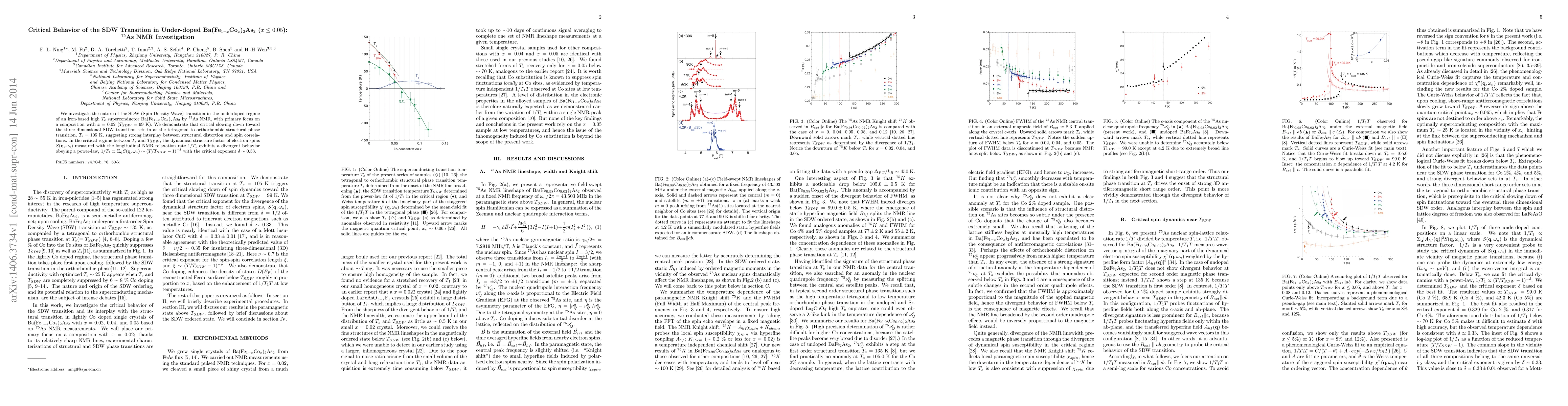 We investigate the nature of the SDW (Spin Density Wave) transition in the underdoped regime of an iron-based high Tc superconductor Ba(Fe1-xCox)2As2 by 75As NMR, with primary focus on a composition with x = 0.02 (T_SDW = 99 K).We demonstrate that critical slowing down toward the three dimensional SDW transition sets in at the tetragonal to orthorhombic structural phase transition, Ts = 105 K, suggesting strong interplay between structural distortion and spin correlations. In the critical regime between Ts and T_SDW, the dynamical structure factor of electron spins S(q,Wn) measured with the longitudinal NMR relaxation rate 1/T1 exhibits a divergent behavior obeying a power law, 1/T1~S(q, Wn)~(T/T_SDW-1)^a with the critical exponent a ~ 0.33.