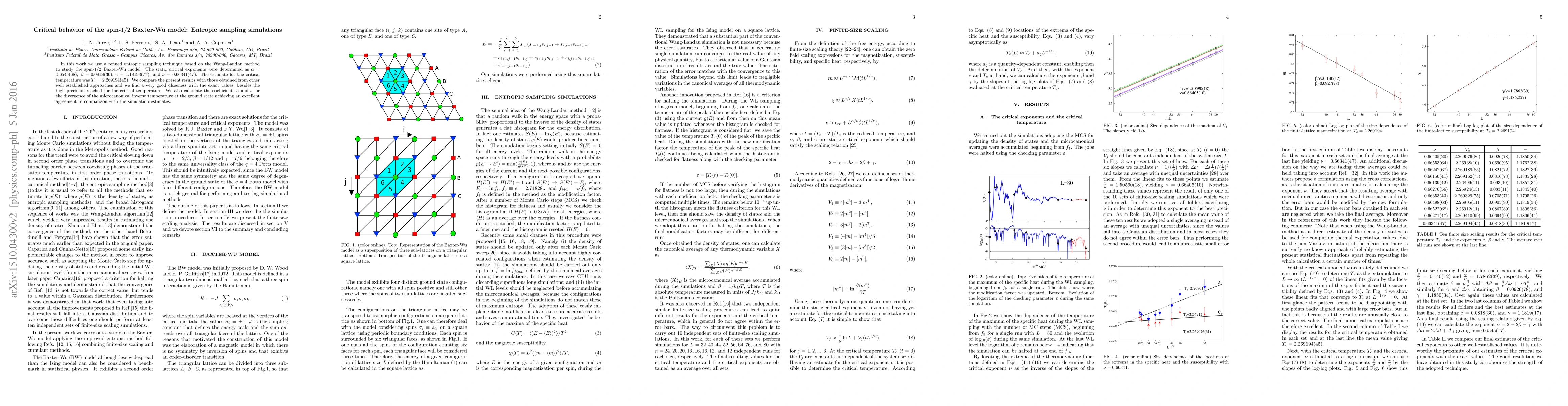 This paper employs refined entropic sampling simulations to determine critical exponents and the critical temperature of the spin-$1/2$ Baxter-Wu model, achieving high precision and close agreement with exact values. The study also calculates coefficients for the divergence of the microcanonical inverse temperature.