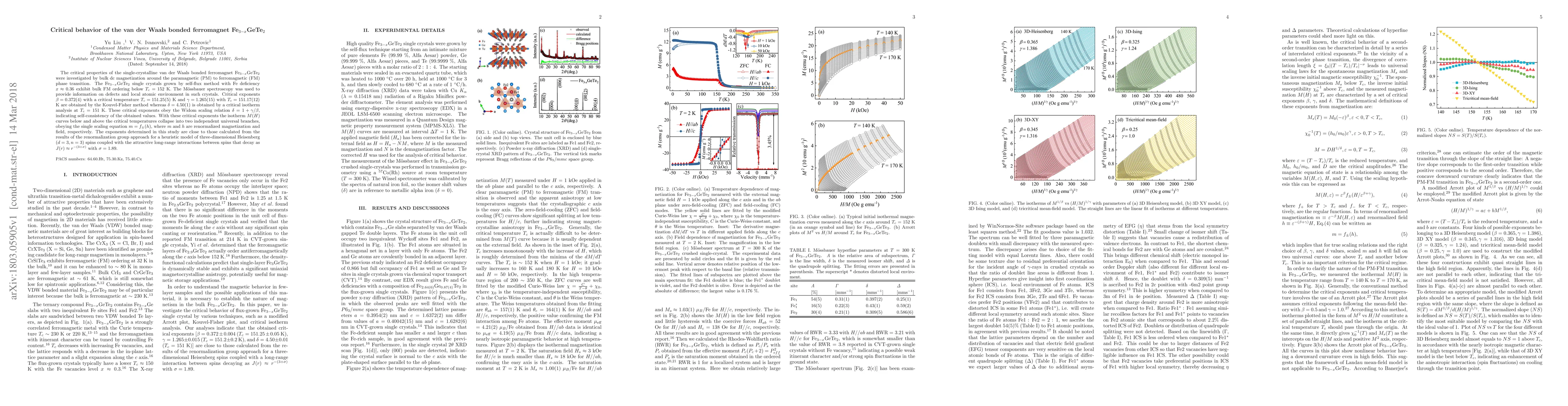 Researchers studied the ferromagnetic properties of Fe$_{3-x}$GeTe$_2$, a van der Waals bonded material, finding critical exponents that obey Widom scaling relation and collapse into universal branches.
