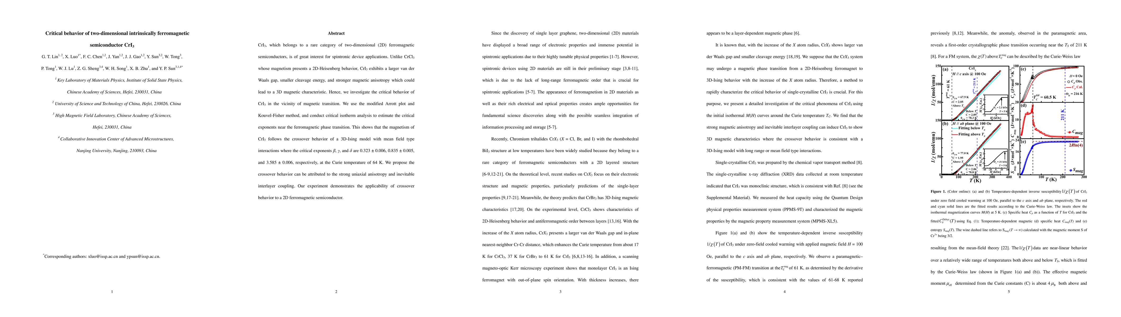 This paper investigates the critical behavior of the 2D ferromagnetic semiconductor CrI3, revealing its crossover to a 3D-Ising model near the magnetic transition. Critical exponents are estimated to be 0.323, 0.835, and 3.585, indicating strong uniaxial anisotropy and interlayer coupling influence its magnetic properties.