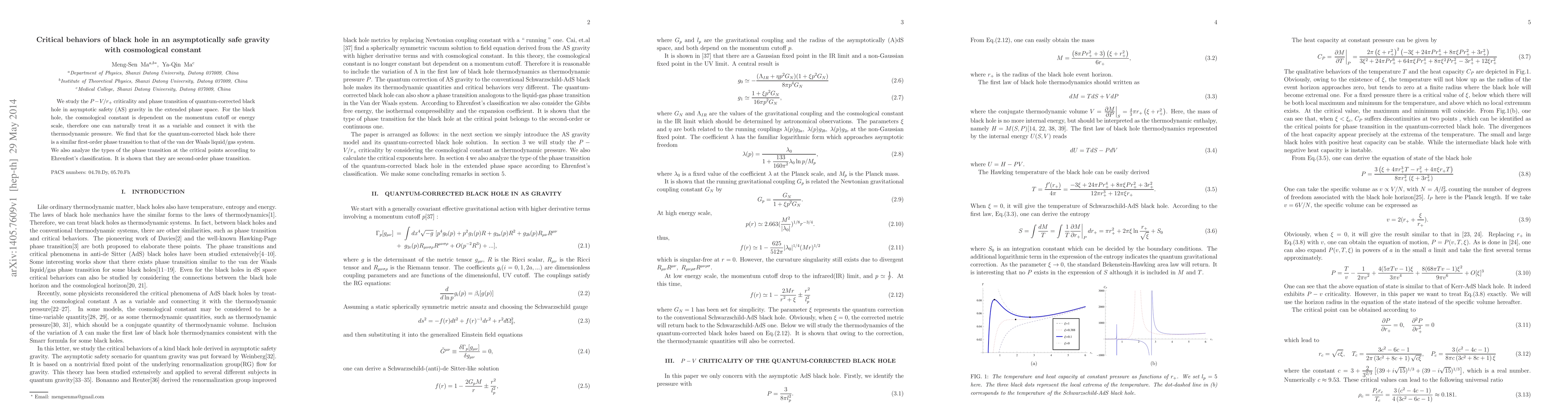 We study the $P-V/r_{+}$ criticality and phase transition of quantum-corrected black hole in asymptotic safety (AS) gravity in the extended phase space. For the black hole, the cosmological constant is dependent on the momentum cutoff or energy scale, therefore one can naturally treat it as a variable and connect it with the thermodynamic pressure. We find that for the quantum-corrected black hole there is a similar first-order phase transition to that of the van der Waals liquid/gas system. We also analyze the types of the phase transition at the critical points according to Ehrenfest's classification. It is shown that they are second-order phase transition.