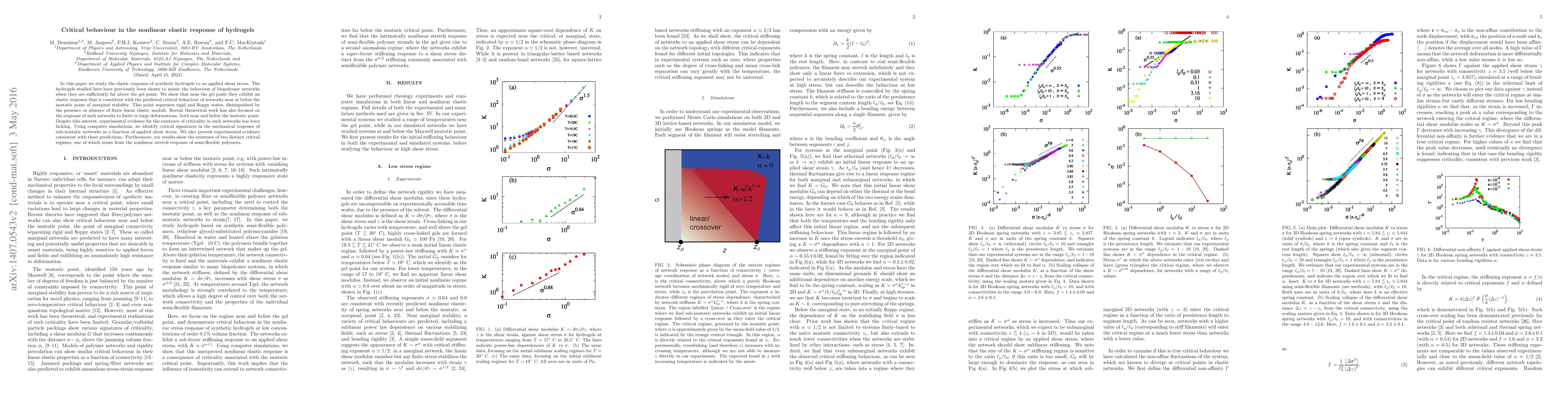 This paper investigates the nonlinear elastic response of synthetic hydrogels under shear stress, revealing critical behavior near the gel point. Experimental and simulation results identify two distinct critical regimes, providing the first evidence for criticality in sub-isostatic polymer networks.