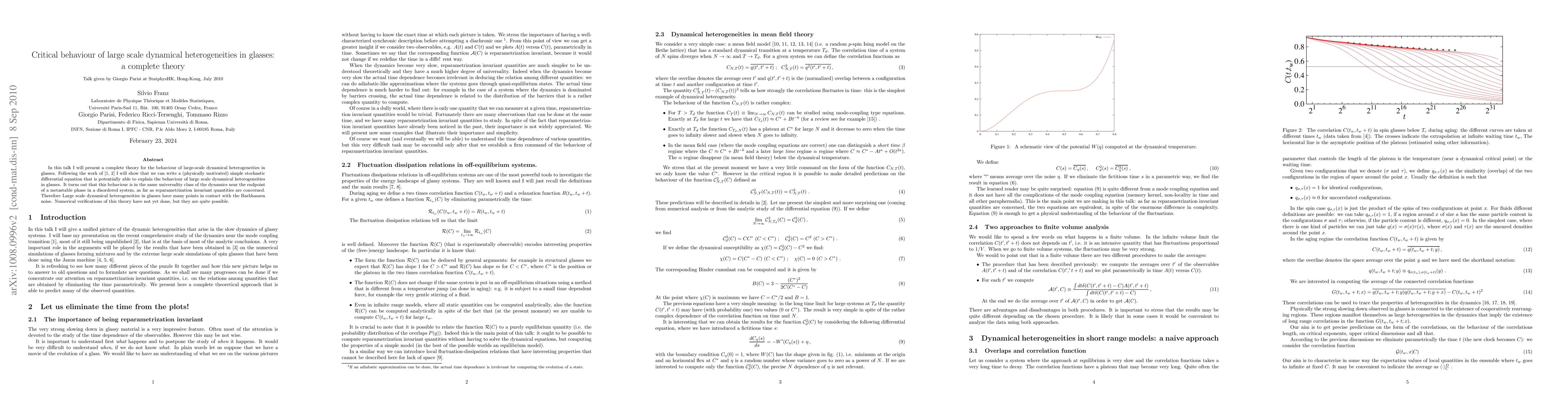 In this talk I will present a complete theory for the behaviour of large-scale dynamical heterogeneities in glasses. Following the work arXiv:1001.1746 I will show that we can write a (physically motivated) simple stochastic differential equation that is potentially able to explain the behaviour of large scale dynamical heterogeneities in glasses. It turns out that this behaviour is in the same universality class of the dynamics near the endpoint of a metastable phase in a disordered system, as far as reparametrization invariant quantities are concerned. Therefore Large scale dynamical heterogeneities in glasses have many points in contact with the Barkhausen noise. Numerical verifications of this theory have not yet done, but they are quite possible.