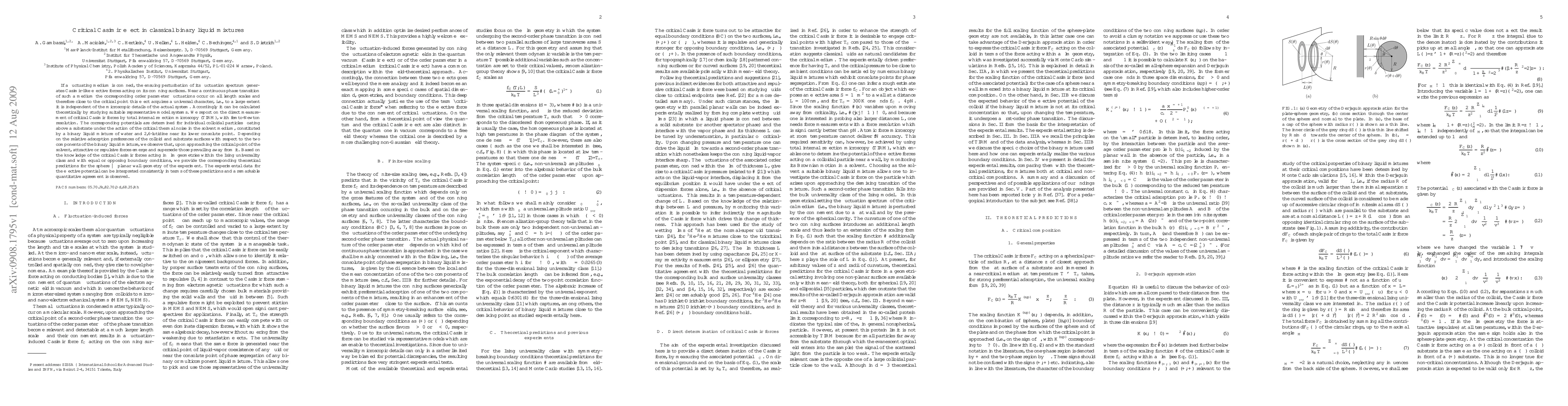 This paper reports the direct measurement of critical Casimir forces using total internal reflection microscopy, revealing how these forces change near the critical point of a binary liquid mixture. The study observes both attractive and repulsive forces depending on surface interactions, with experimental data aligning well with theoretical predictions for sphere-planar wall geometries.
