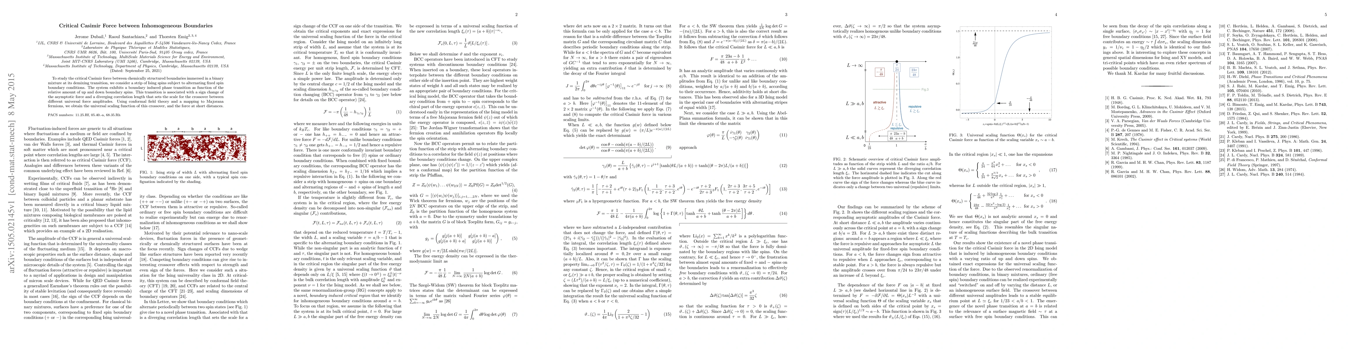 This study explores the critical Casimir force between chemically structured boundaries in a binary mixture at its demixing transition, revealing a boundary-induced phase transition linked to a sign change in the force and a diverging correlation length. The research employs conformal field theory and Majorana fermions to derive the universal scaling function and the force at short distances.