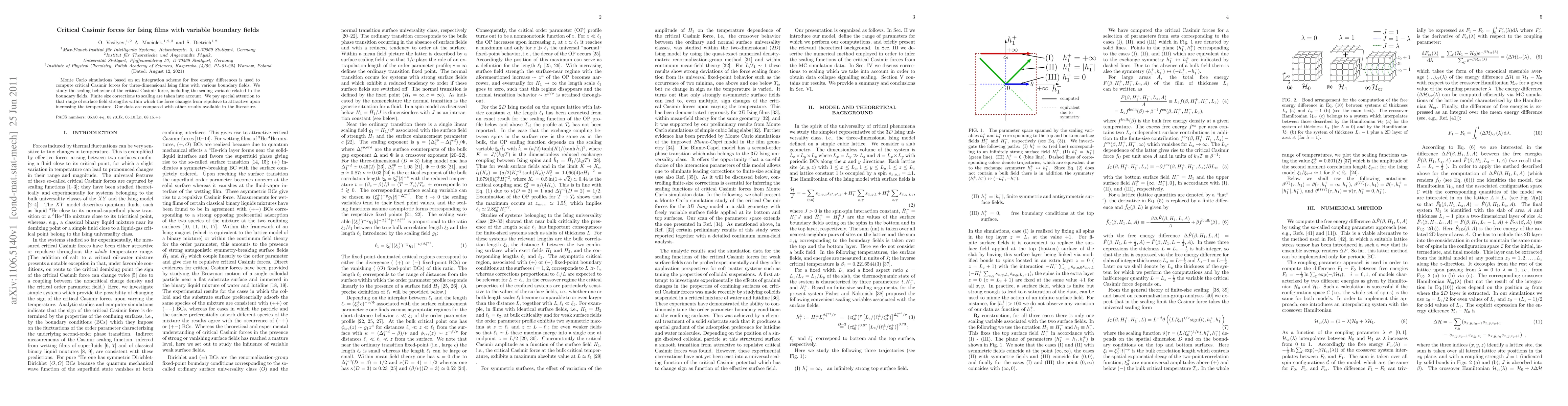This paper uses Monte Carlo simulations to compute critical Casimir forces for Ising films with varying boundary fields, focusing on the transition from repulsive to attractive forces with temperature changes. The study includes scaling behavior analysis and finite size corrections, comparing results with existing literature.