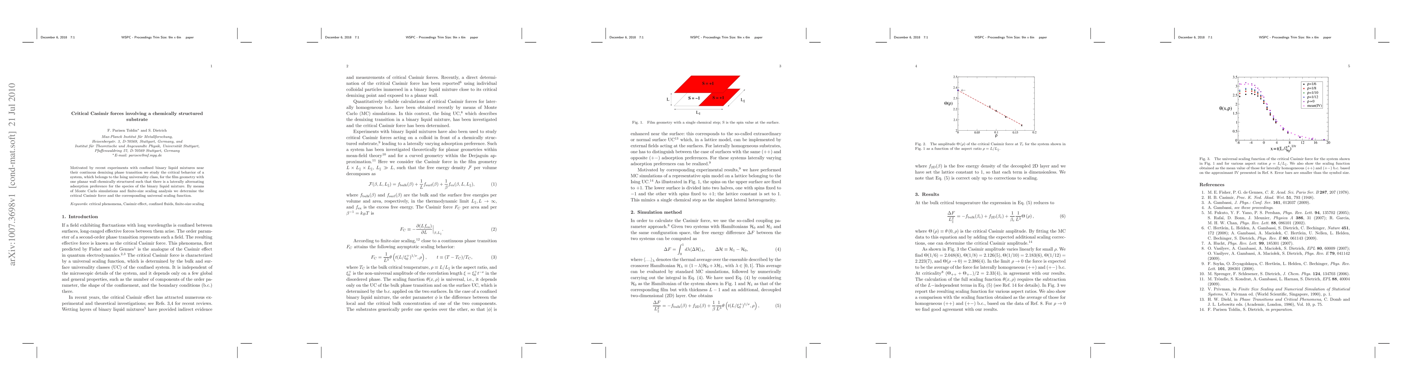 This paper investigates the critical behavior of a binary liquid mixture near its phase transition, focusing on the critical Casimir force between a film and a chemically structured substrate with alternating adsorption preferences. The study employs Monte Carlo simulations and finite-size scaling to determine the critical Casimir force and its universal scaling function.