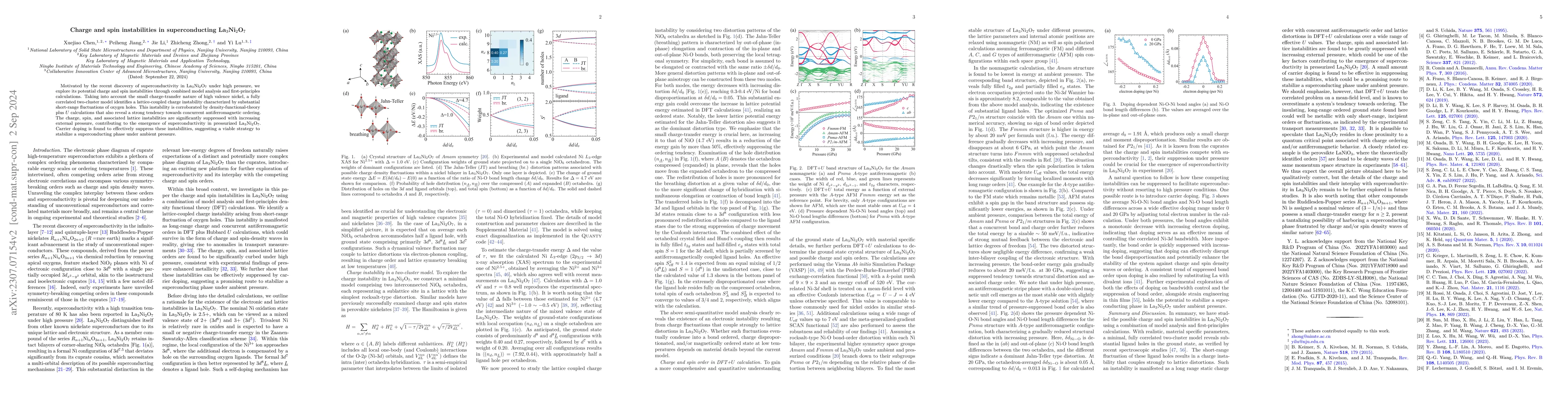 This paper investigates the charge and spin instabilities in superconducting La$_3$Ni$_2$O$_7$ under high pressure, revealing a lattice-coupled rocksalt-type charge instability and strong antiferromagnetic tendencies, both suppressed by external pressure and carrier doping, which may stabilize superconductivity under ambient conditions.