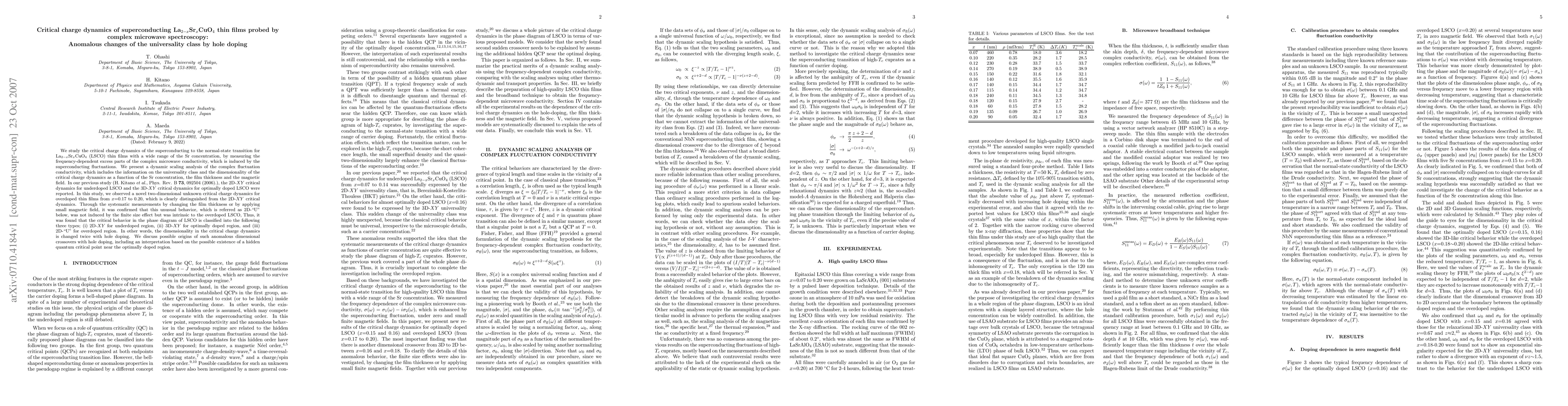 We study the critical charge dynamics of the superconducting to the normal-state transition for LSCO thin films with a wide range of the Sr concentration, by measuring the frequency-dependent excess parts of the complex microwave conductivity, which is induced by the superconducting fluctuations. We present a dynamic scaling analysis of the complex fluctuation conductivity, which includes the information on the universality class and the dimensionality of the critical charge dynamics as a function of the Sr concentration, the film thickness and the magnetic field. In our previous study (H. Kitano et al., Phys. Rev. B 73, 092504 (2006).), the 2D-XY critical dynamics for underdoped LSCO and the 3D-XY critical dynamics for optimally doped LSCO were reported. In this study, we observed a novel two-dimensional unknown critical charge dynamics for overdoped thin films from x=0.17 to 0.20, which is clearly distinguished from the 2D-XY critical dynamics. Through the systematic measurements by changing the film thickness or by applying small magnetic field, it was confirmed that this unusual behavior, which is referred as 2D-"U" below, was not induced by the finite size effect but was intrinsic to the overdoped LSCO. Thus, it was found that the critical behavior in the phase diagram of LSCO is classified into the following three types; (i) 2D-XY for underdoped region, (ii) 3D-XY for optimally doped region, and (iii) 2D-"U" for overdoped region. In other words, the dimensionality in the critical charge dynamics is changed twice with hole doping. We discuss possible origins of such anomalous dimensional crossovers with hole doping, including an interpretation based on the possible existence of a hidden quantum critical point near the optimally doped region.
