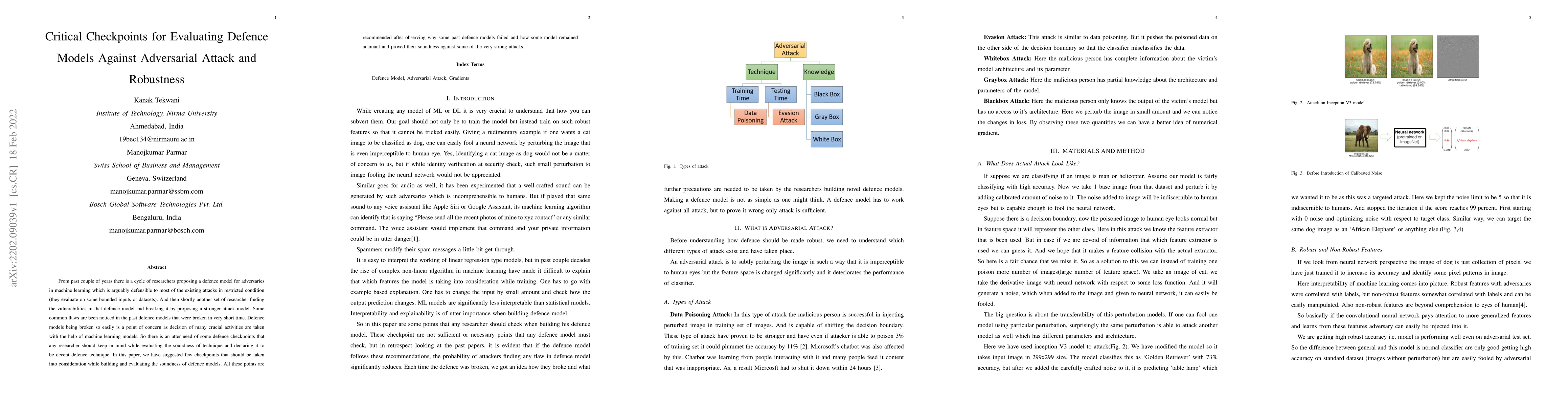 This paper discusses critical checkpoints for evaluating the robustness of defence models against adversarial attacks in machine learning. It highlights common flaws in past defence models that were quickly broken and proposes several checkpoints to ensure the soundness and durability of future defence techniques.