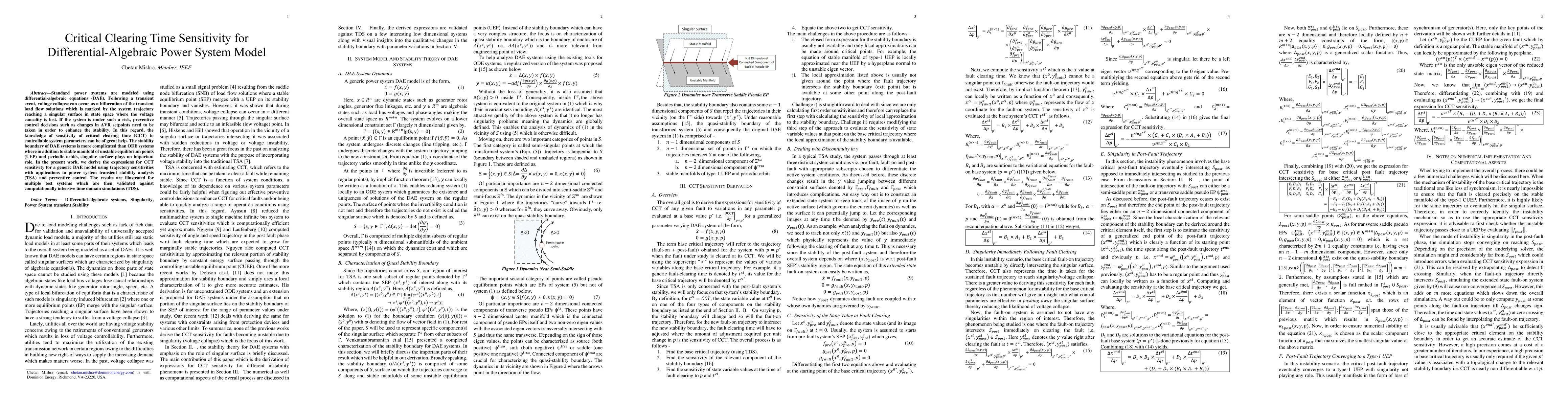 This paper derives expressions for the sensitivity of critical clearing time (CCT) in differential-algebraic equations (DAE) models of power systems, focusing on transient stability analysis and preventive control. The results are validated through computationally intensive time-domain simulations for multiple test systems.