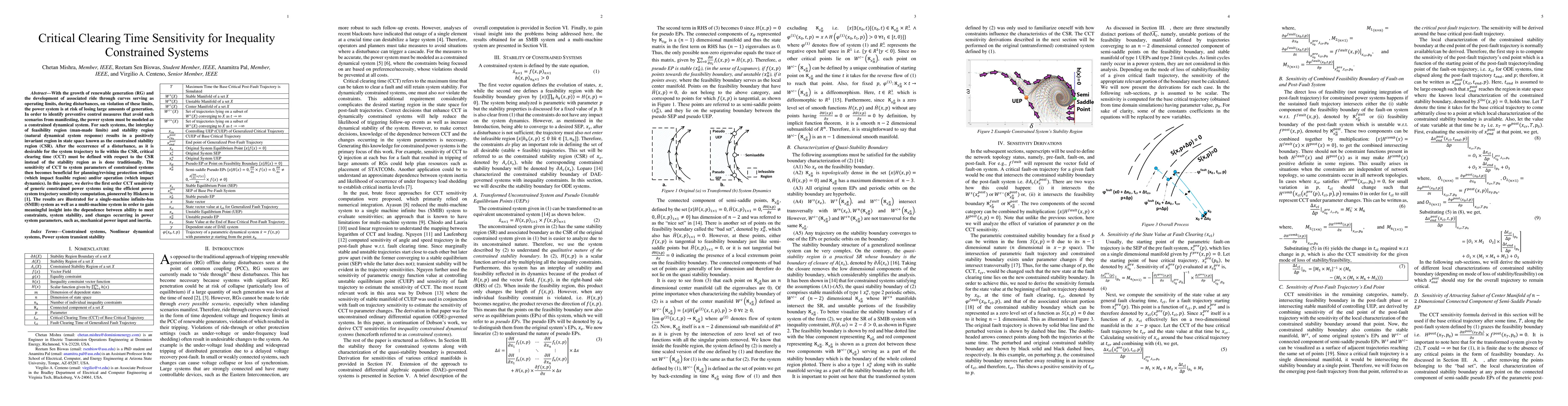 With the growth of renewable generation (RG) and the development of associated ride through curves serving as operating limits, during disturbances, on violation of these limits, the power system is at risk of losing large amounts of generation. In order to identify preventive control measures that avoid such scenarios from manifesting, the power system must be modeled as a constrained dynamical system. For such systems, the interplay of feasibility region (man-made limits) and stability region (natural dynamical system response) results in a positively invariant region in state space known as the constrained stability region (CSR). After the occurrence of a disturbance, as it is desirable for the system trajectory to lie within the CSR, critical clearing time (CCT) must be defined with respect to the CSR instead of the stability region as is done traditionally. The sensitivity of CCT to system parameters of constrained systems then becomes beneficial for planning/revising protection settings (which impact feasible region) and/or operation (which impact dynamics). In this paper, we derive the first order CCT sensitivity of generic constrained power systems using the efficient power system trajectory sensitivity computation, pioneered by Hiskens in [1]. The results are illustrated for a single-machine infinite-bus (SMIB) system as well as a multi-machine system in order to gain meaningful insight into the dependence between ability to meet constraints, system stability, and changes occurring in power system parameters, such as, mechanical power input and inertia.