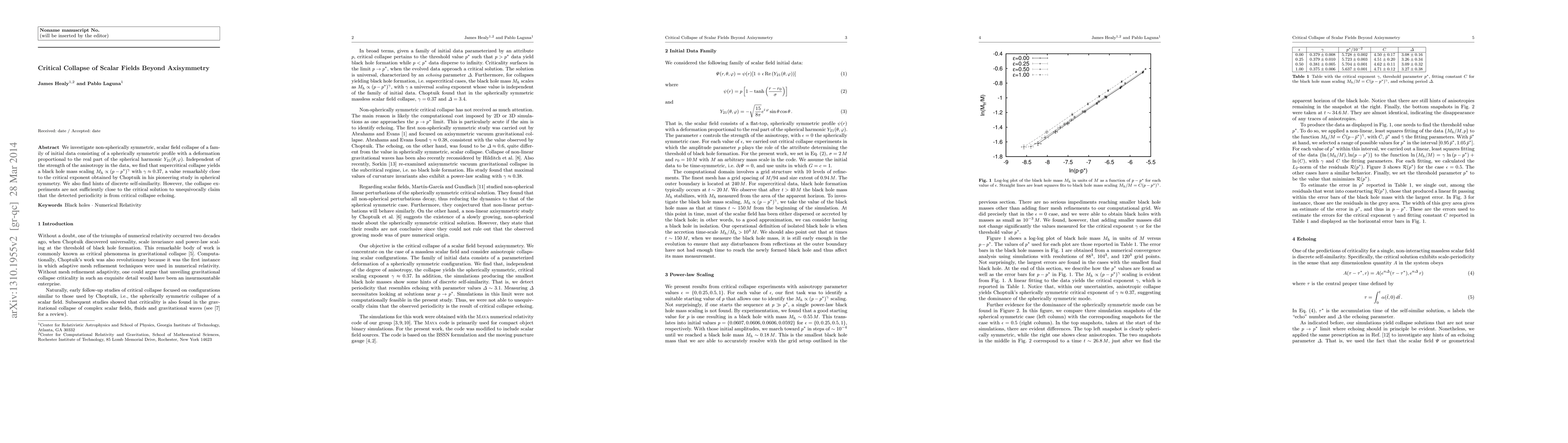 This paper examines the non-spherical collapse of scalar fields with anisotropic deformations, finding that supercritical collapse results in a black hole mass scaling similar to spherical collapse, with a critical exponent close to that found by Choptuik. The study hints at discrete self-similarity but lacks conclusive evidence of critical collapse echoing due to insufficient proximity to the critical solution.