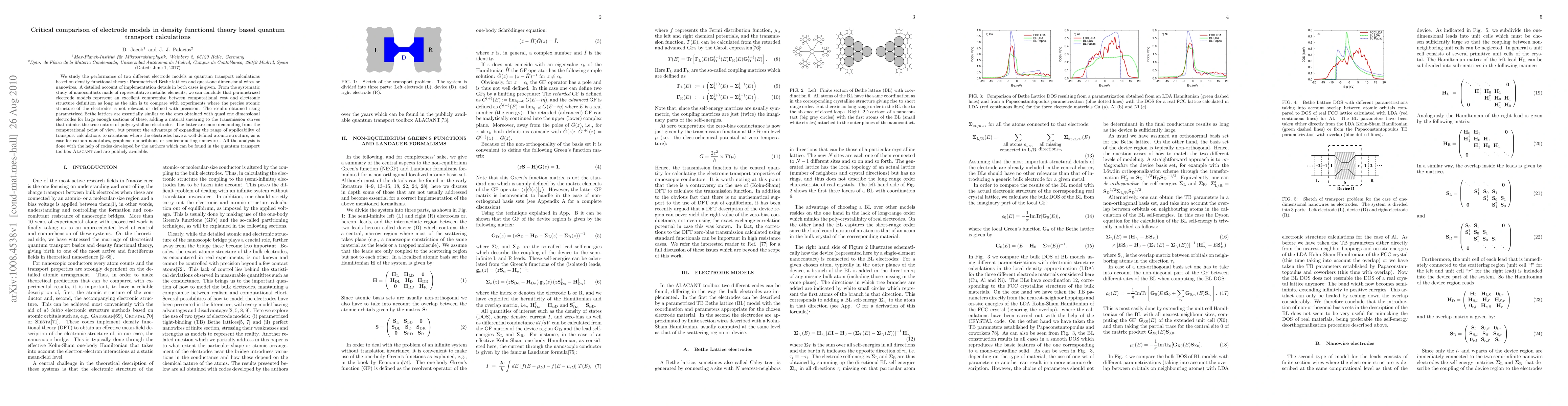 We study the performance of two different electrode models in quantum transport calculations based on density functional theory: Parametrized Bethe lattices and quasi-one dimensional wires or nanowires. A detailed account of implementation details in both cases is given. From the systematic study of nanocontacts made of representative metallic elements, we can conclude that parametrized electrode models represent an excellent compromise between computational cost and electronic structure definition as long as the aim is to compare with experiments where the precise atomic structure of the electrodes is not relevant or defined with precision. The results obtained using parametrized Bethe lattices are essentially similar to the ones obtained with quasi one dimensional electrodes for large enough sections of these, adding a natural smearing to the transmission curves that mimics the true nature of polycrystalline electrodes. The latter are more demanding from the computational point of view, but present the advantage of expanding the range of applicability of transport calculations to situations where the electrodes have a well-defined atomic structure, as is case for carbon nanotubes, graphene nanoribbons or semiconducting nanowires. All the analysis is done with the help of codes developed by the authors which can be found in the quantum transport toolbox Alacant and are publicly available.
