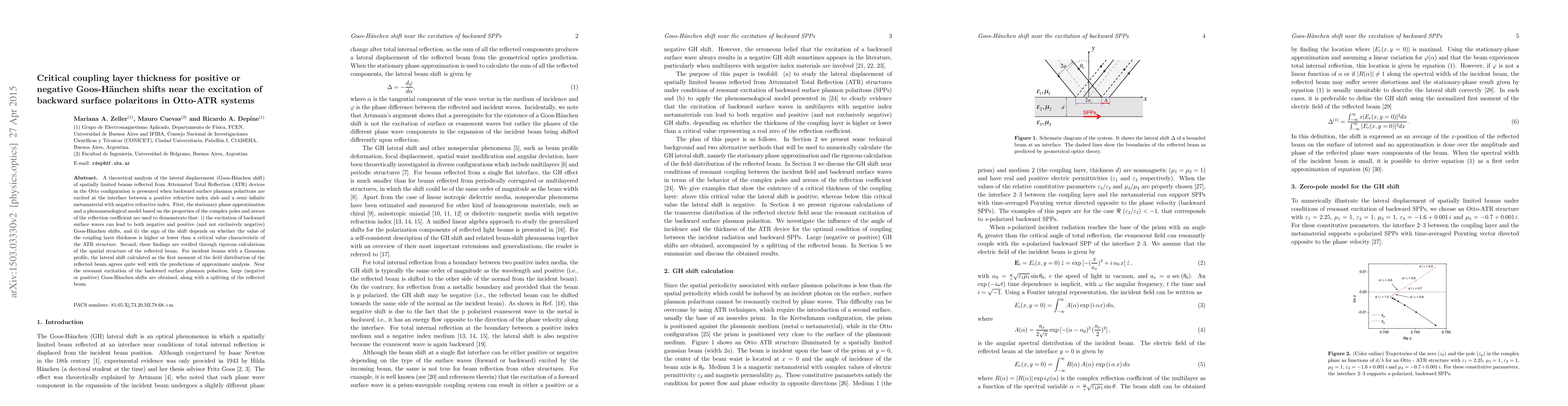 This paper investigates the Goos-Hänchen shift in Otto-ATR systems with metamaterials, demonstrating that backward surface polaritons can cause both positive and negative shifts depending on the coupling layer thickness. The critical thickness determines the shift's sign, verified through rigorous calculations of the reflected beam's spatial structure.