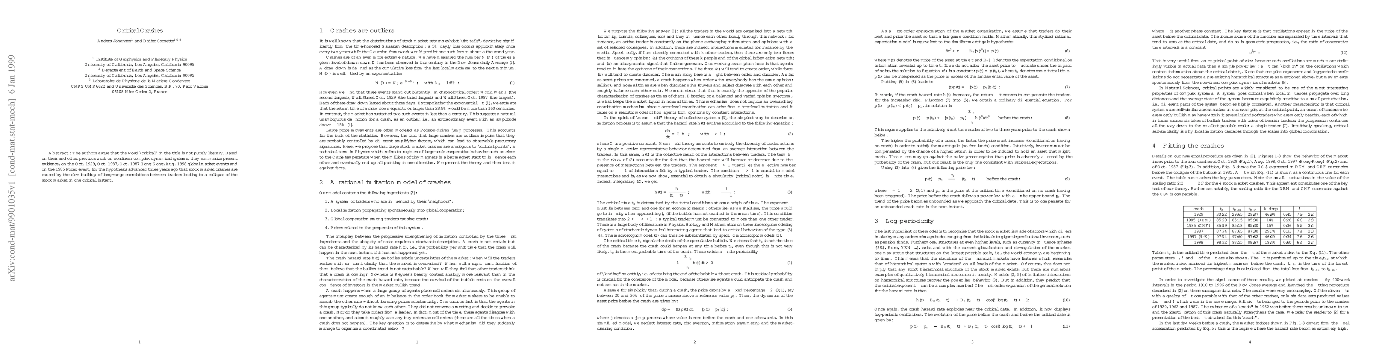 We argue that the word ``critical'' in the title is not purely literary. Based on our and other previous work on nonlinear complex dynamical systems, we summarize present evidence, on the Oct. 1929, Oct. 1987, Oct. 1987 Hong-Kong, Aug. 1998 global market events and on the 1985 Forex event, for the hypothesis advanced four years ago that stock market crashes are caused by the slow buildup of long-range correlations between traders leading to a collapse of the stock market in one critical instant. We qualify the log-periodic oscillations using a novel non-parametric method that does not rely on any fit: the corresponding log-periodogram exhibits a strong statistically significant peak for all six crashes examined, pointing at approximately the same prefered scaling ratio around 2.
