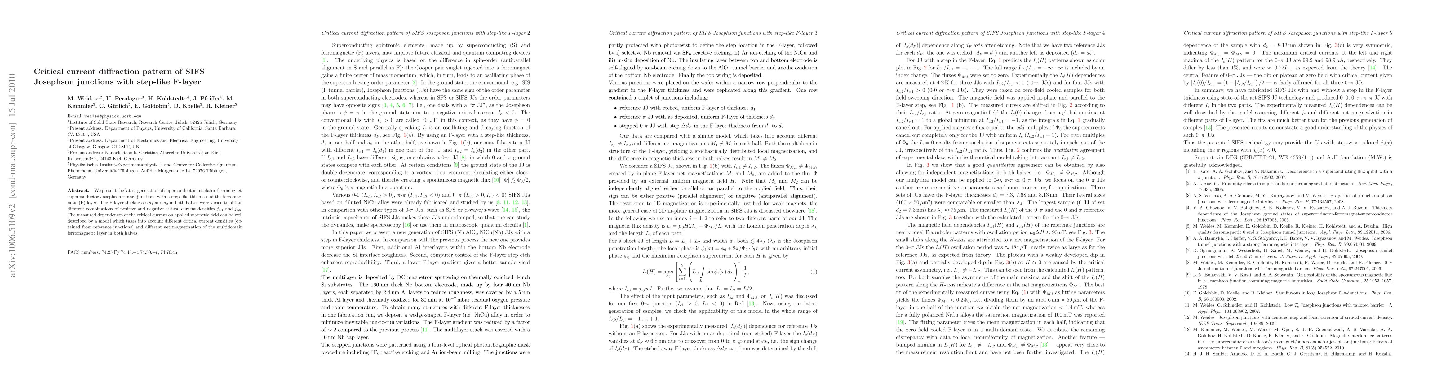 Researchers studied Josephson junctions with a ferromagnetic layer of varying thickness, finding that the critical current density can be described by a model accounting for different net magnetizations in both halves.