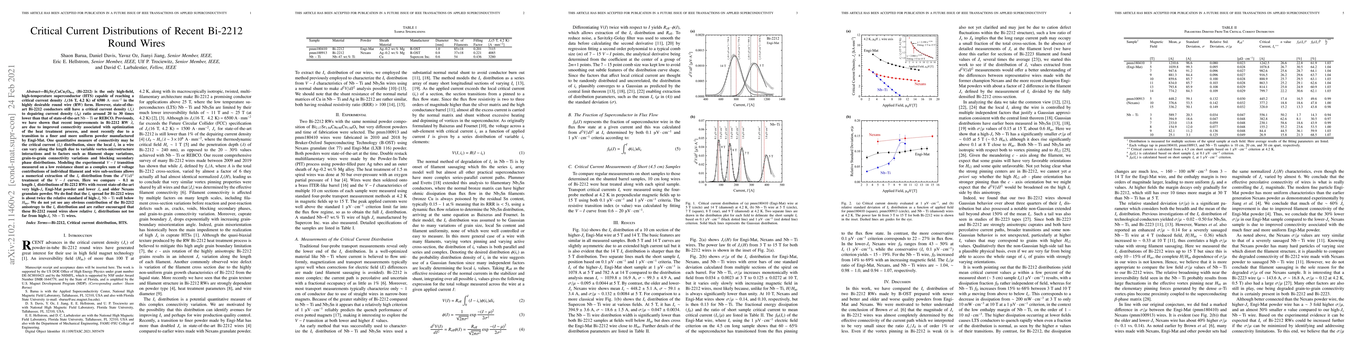 This paper investigates the critical current ($I_{\text{c}}$) distributions in Bi-2212 round wires, comparing recent high-$J_{\text{c}}$ Engi-Mat powder to older Nexans granulate powder. The study finds that Bi-2212 wires exhibit $I_{\text{c}}$ distributions about twice as spread as high-$J_{\text{c}}$ $\mathrm{Nb-Ti}$ wires, indicating promising relative performance despite anisotropy.