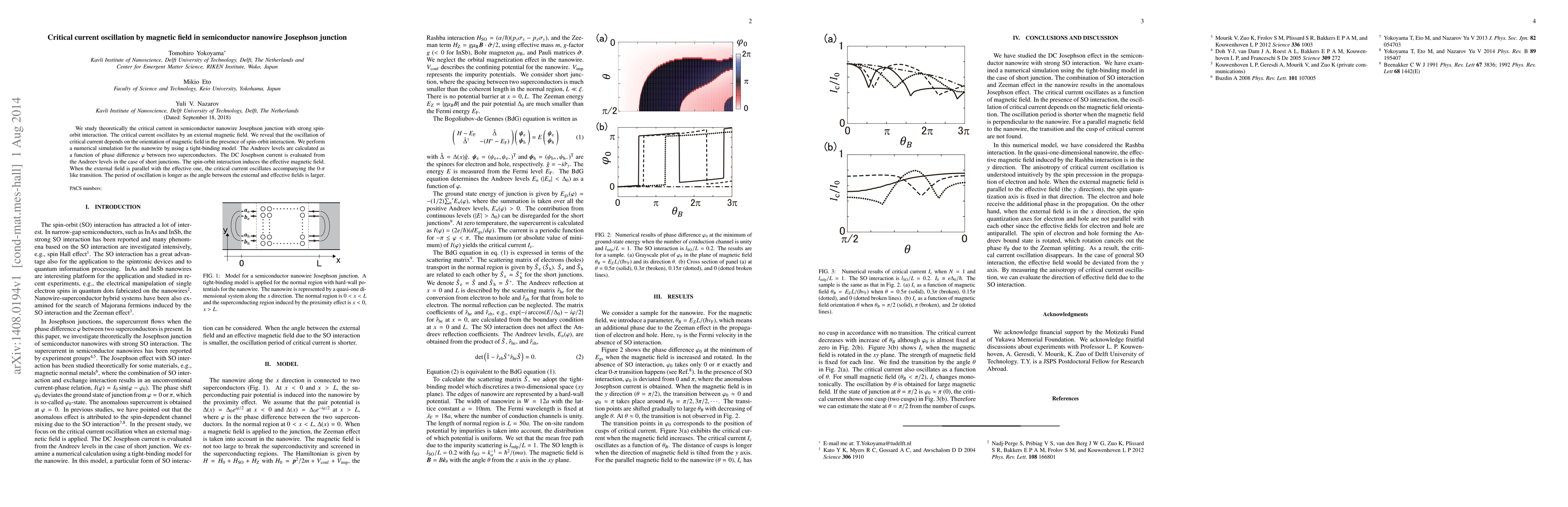 The work introduces a novel perspective on how the orientation of an external magnetic field, in conjunction with spin-orbit interaction, influences critical current oscillations in nanowire Josephson junctions.