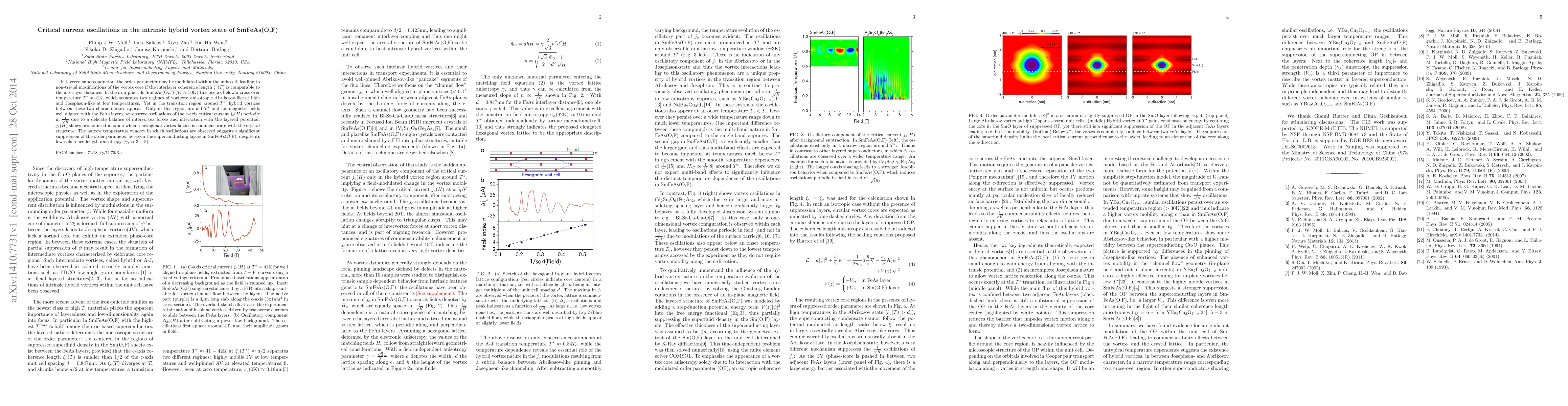 This study reveals critical current oscillations in the hybrid vortex state of the iron-pnictide superconductor SmFeAs(O,F) around a crossover temperature, indicating a delicate balance of intervortex forces and layered potential interaction. The oscillations occur only in a narrow temperature window and suggest significant suppression of the order parameter between superconducting layers.
