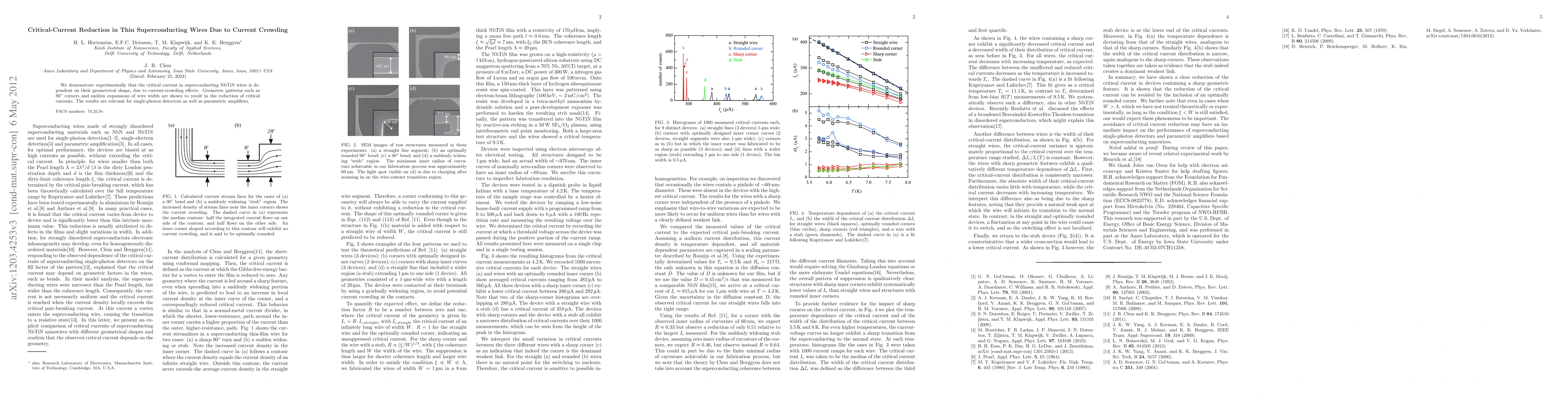 We demonstrate experimentally that the critical current in superconducting NbTiN wires is dependent on their geometrical shape, due to current-crowding effects. Geometric patterns such as 90 degree corners and sudden expansions of wire width are shown to result in the reduction of critical currents. The results are relevant for single-photon detectors as well as parametric amplifiers.
