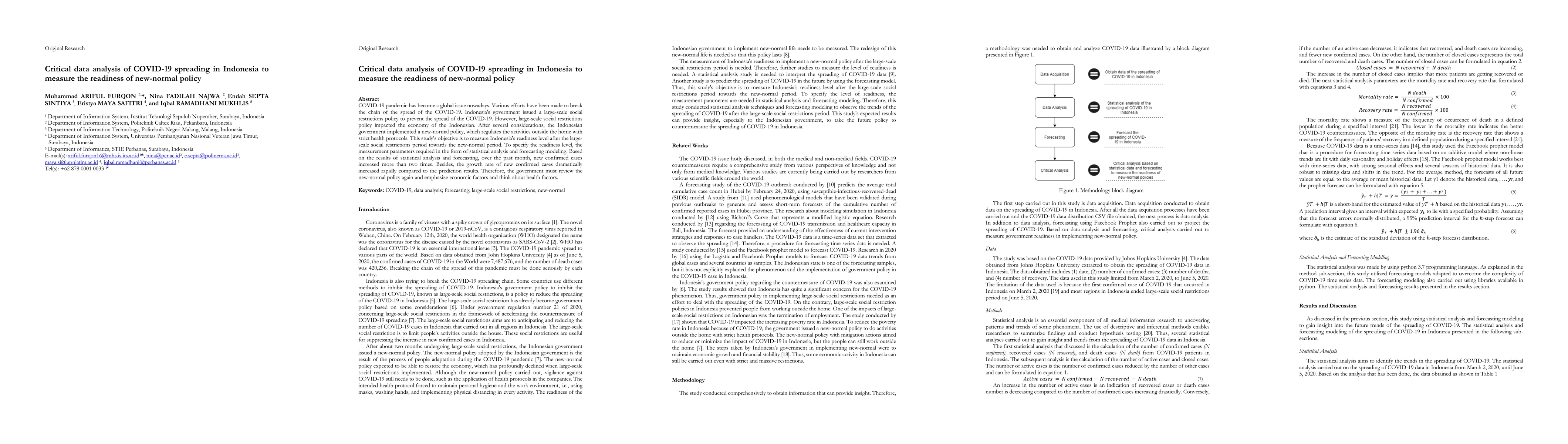 COVID-19 pandemic has become a global issue nowadays. Various efforts have been made to break the chain of the spread of the COVID-19. Indonesia's government issued a large-scale social restrictions policy to prevent the spread of the COVID-19. However, large-scale social restrictions policy impacted the economy of the Indonesian. After several considerations, the Indonesian government implemented a new-normal policy, which regulates the activities outside the home with strict health protocols. This study's objective is to measure Indonesia's readiness level after the large-scale social restrictions period towards the new-normal period. To specify the readiness level, the measurement parameters required in the form of statistical analysis and forecasting modeling. Based on the results of statistical analysis and forecasting, over the past month, new confirmed cases increased more than two times. Besides, the growth rate of new confirmed cases dramatically increased rapidly compared to the prediction results. Therefore, the government must review the new-normal policy again and emphasize economic factors and think about health factors