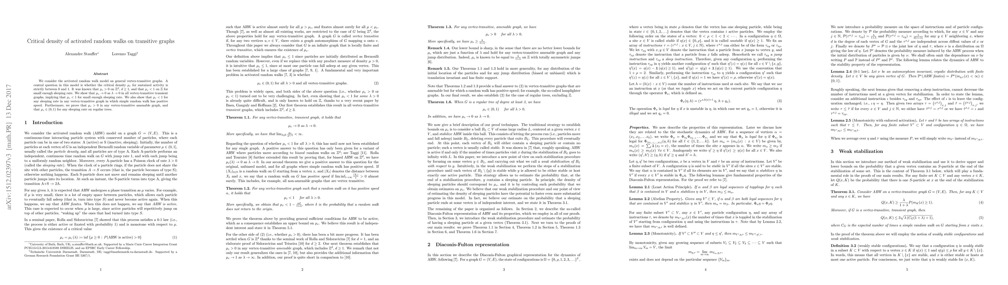 This paper investigates the critical density $\mu_c$ for sustained activity in activated random walks on vertex-transitive graphs, proving that $\mu_c<1$ for small sleeping rates in transient graphs and for any rate in graphs where simple random walk has positive speed. It also establishes $\mu_c>0$ in amenable graphs and $\mu_c\in(0,1)$ on regular trees.