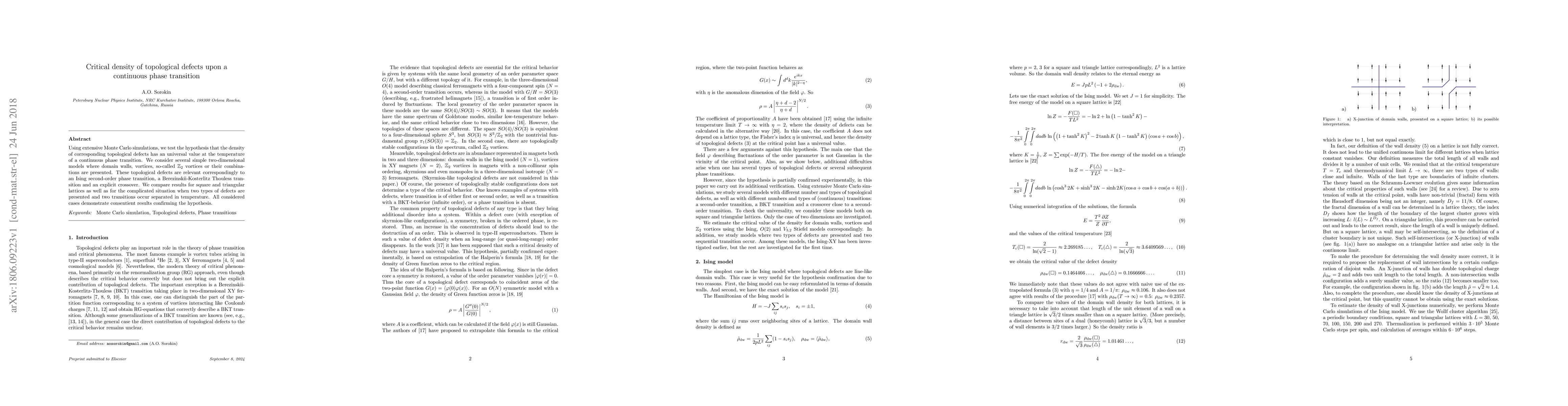 Researchers used Monte Carlo simulations to test a hypothesis about topological defects during continuous phase transitions in 2D models, finding universal values for defect densities across various systems.