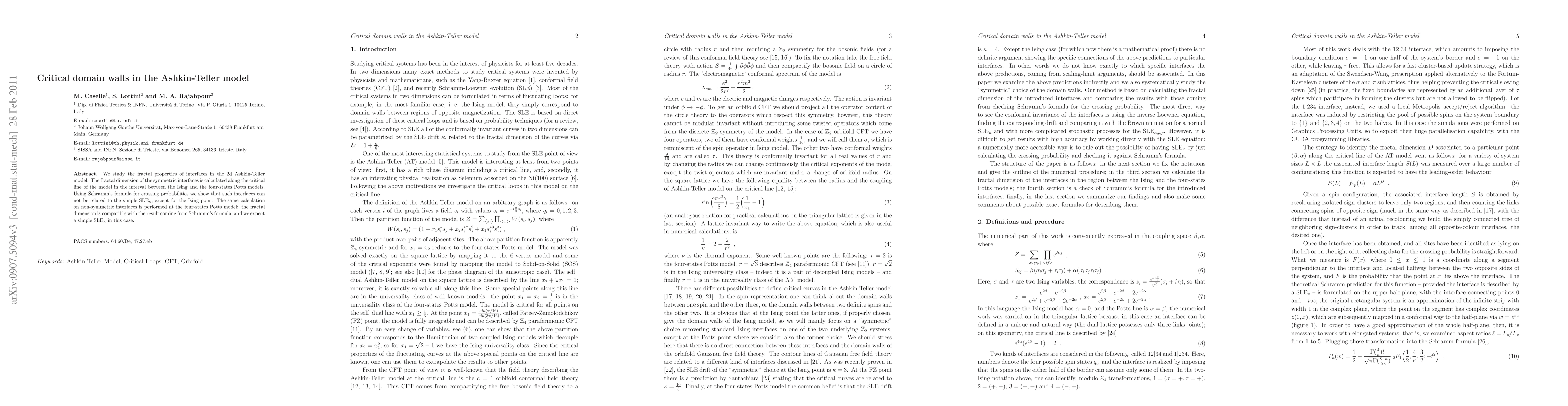 This paper investigates the fractal properties of interfaces in the 2D Ashkin-Teller model, finding that symmetric interfaces along the critical line exhibit a fractal dimension incompatible with simple SLE$_\kappa$ except at the Ising point. Non-symmetric interfaces at the four-states Potts model show fractal dimension consistent with Schramm's formula, suggesting a simple SLE$_\kappa$ relationship.