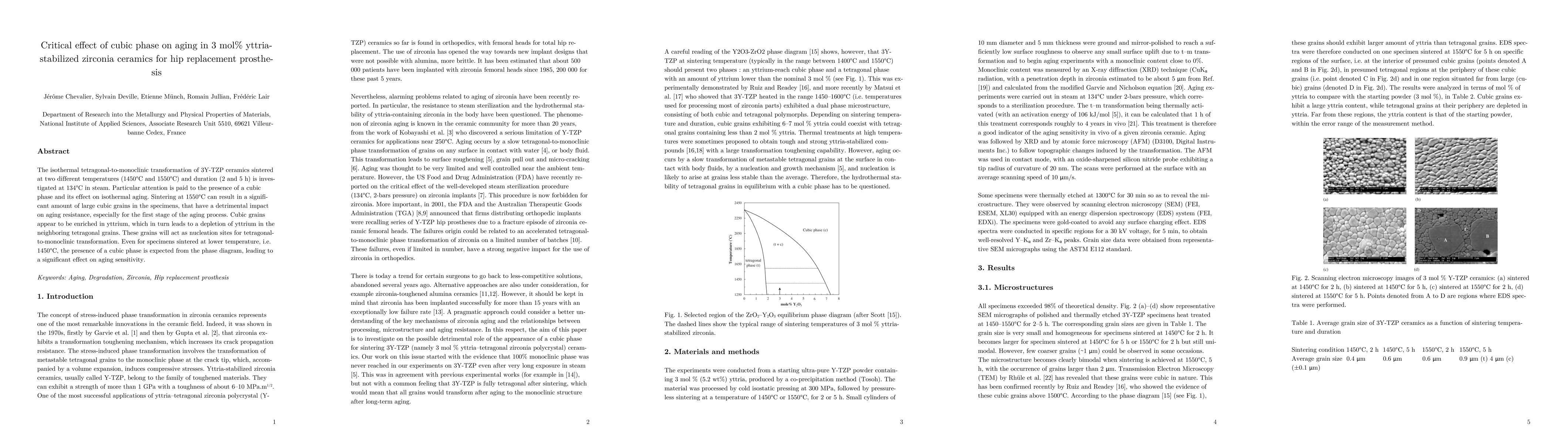 This study investigates the isothermal transformation of 3Y-TZP ceramics sintered at different temperatures and durations, finding that the presence of cubic phase grains, especially when sintered at higher temperatures, significantly reduces aging resistance by promoting tetragonal-to-monoclinic transformation.