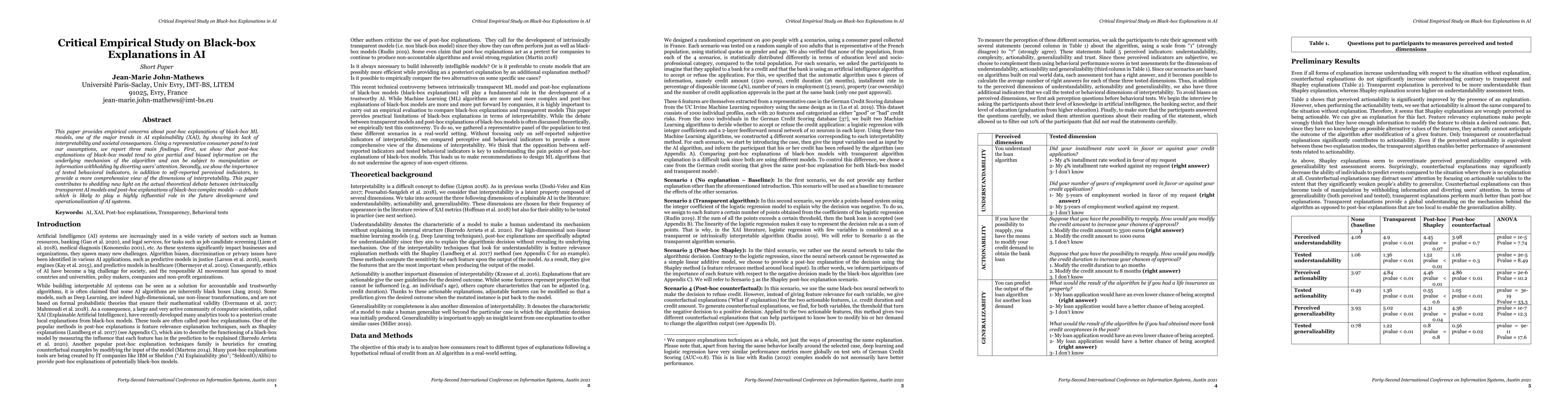 This paper provides empirical concerns about post-hoc explanations of black-box ML models, one of the major trends in AI explainability (XAI), by showing its lack of interpretability and societal consequences. Using a representative consumer panel to test our assumptions, we report three main findings. First, we show that post-hoc explanations of black-box model tend to give partial and biased information on the underlying mechanism of the algorithm and can be subject to manipulation or information withholding by diverting users' attention. Secondly, we show the importance of tested behavioral indicators, in addition to self-reported perceived indicators, to provide a more comprehensive view of the dimensions of interpretability. This paper contributes to shedding new light on the actual theoretical debate between intrinsically transparent AI models and post-hoc explanations of black-box complex models-a debate which is likely to play a highly influential role in the future development and operationalization of AI systems.