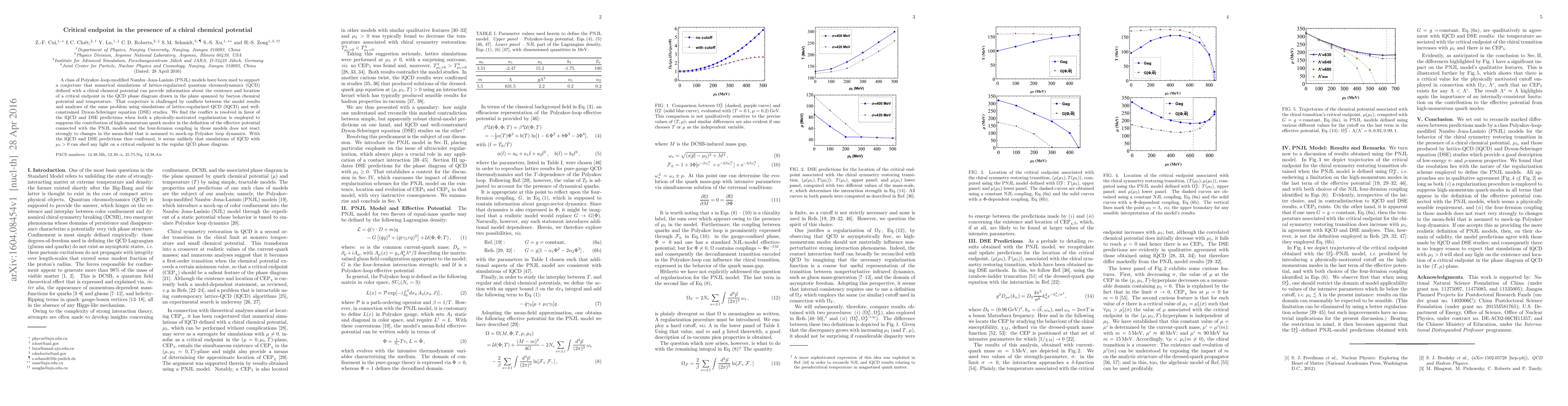 A class of Polyakov-loop-modified Nambu--Jona-Lasinio (PNJL) models have been used to support a conjecture that numerical simulations of lattice-regularized quantum chromodynamics (QCD) defined with a chiral chemical potential can provide information about the existence and location of a critical endpoint in the QCD phase diagram drawn in the plane spanned by baryon chemical potential and temperature. That conjecture is challenged by conflicts between the model results and analyses of the same problem using simulations of lattice-regularized QCD (lQCD) and well-constrained Dyson-Schwinger equation (DSE) studies. We find the conflict is resolved in favor of the lQCD and DSE predictions when both a physically-motivated regularization is employed to suppress the contribution of high-momentum quark modes in the definition of the effective potential connected with the PNJL models and the four-fermion coupling in those models does not react strongly to changes in the mean-field that is assumed to mock-up Polyakov loop dynamics. With the lQCD and DSE predictions thus confirmed, it seems unlikely that simulations of lQCD with $\mu_5>0$ can shed any light on a critical endpoint in the regular QCD phase diagram.