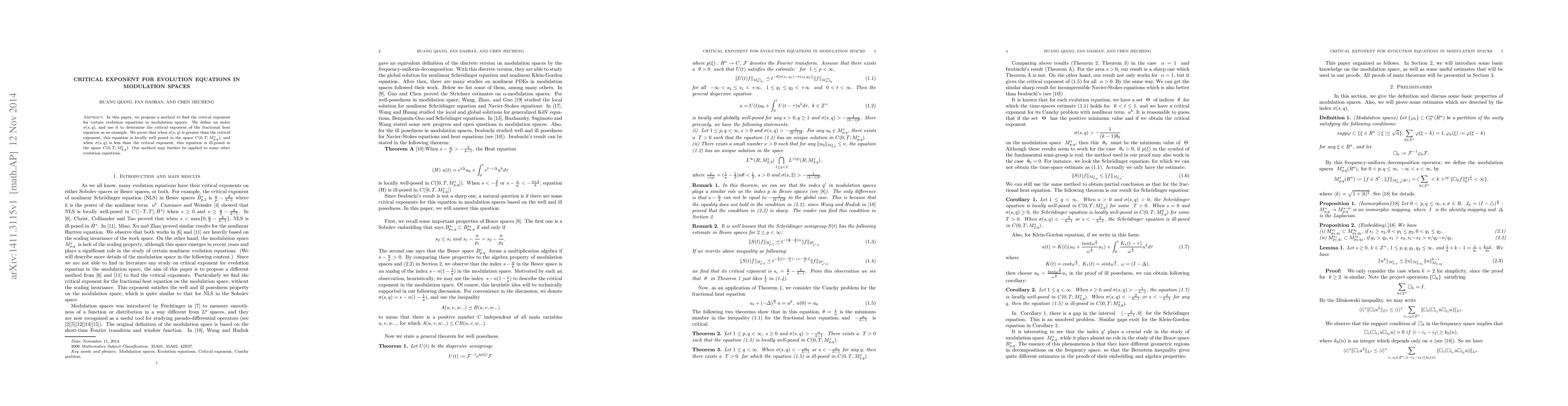 In this paper, we propose a method to find the critical exponent for certain evolution equations in modulation spaces. We define an index $\sigma (s,q)$, and use it to determine the critical exponent of the fractional heat equation as an example. We prove that when $\sigma (s,q)$ is greater than the critical exponent, this equation is locally well posed in the space $C(0,T;M_{p,q}^{s})$; and when $\sigma (s,q)$ is less than the critical exponent, this equation is ill-posed in the space $C(0,T;M_{2,q}^{s})$. Our method may further be applied to some other evolution equations.