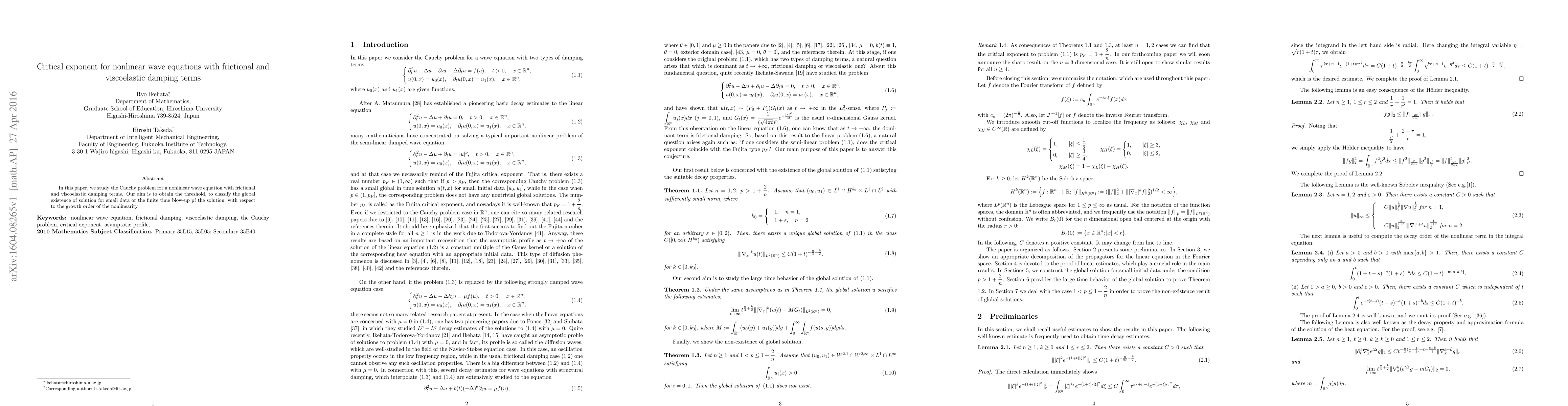This paper investigates the Cauchy problem for a nonlinear wave equation incorporating frictional and viscoelastic damping. It aims to determine the critical exponent that dictates whether solutions exist globally for small initial data or if they will blow up in finite time based on the nonlinearity's growth order.