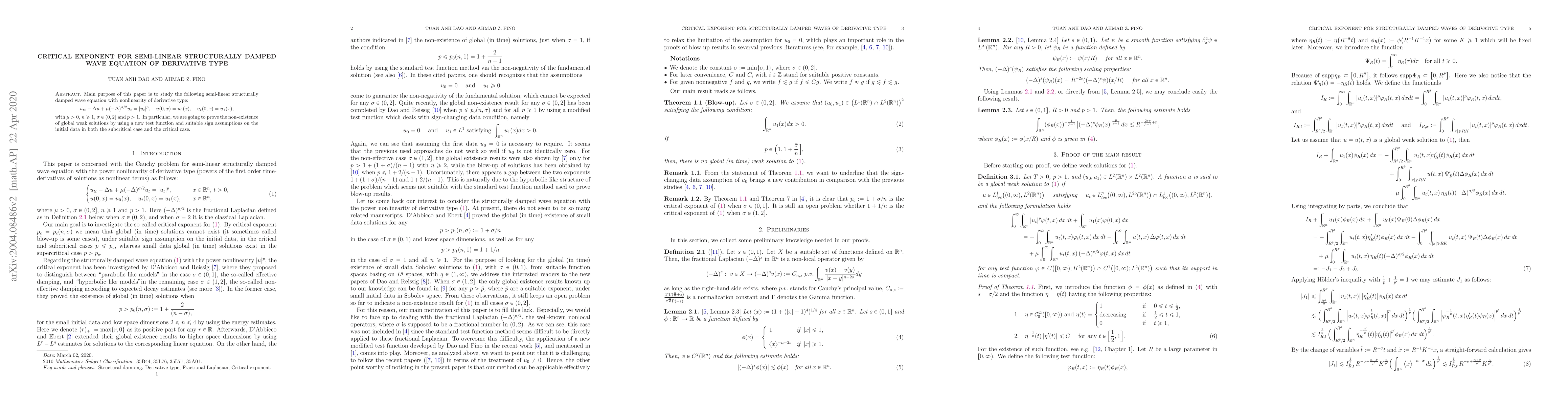 Main purpose of this paper is to study the following semi-linear structurally damped wave equation with nonlinearity of derivative type: $$u_{tt}- \Delta u+ \mu(-\Delta)^{\sigma/2} u_t= |u_t|^p,\quad u(0,x)= u_0(x),\quad u_t(0,x)=u_1(x),$$ with $\mu>0$, $n\geq1$, $\sigma \in (0,2]$ and $p>1$. In particular, we are going to prove the non-existence of global weak solutions by using a new test function and suitable sign assumptions on the initial data in both the subcritical case and the critical case.