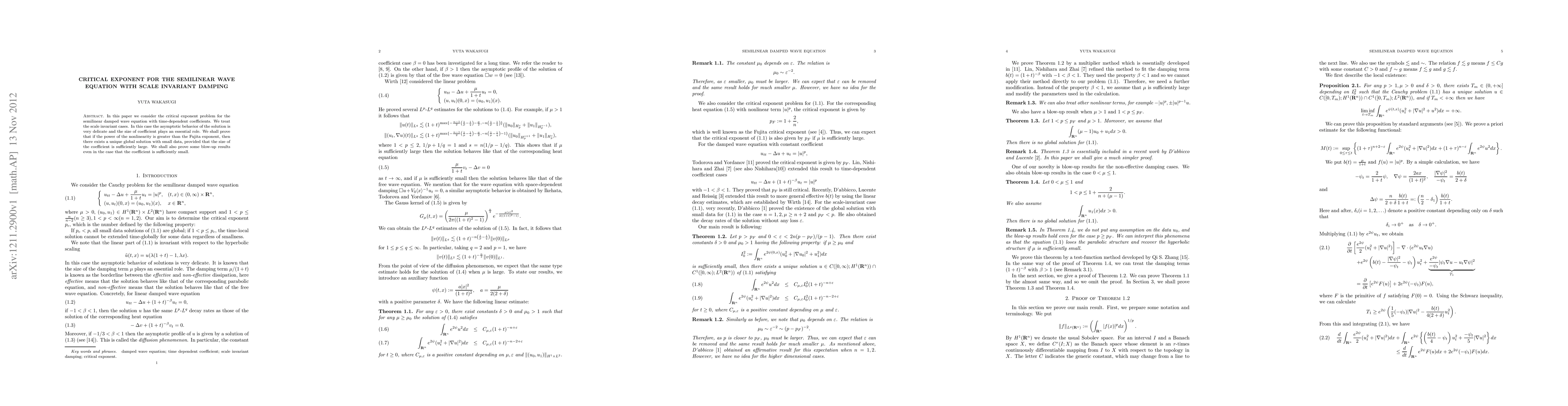 This paper investigates the critical exponent for the semilinear damped wave equation with scale invariant damping and time-dependent coefficients. It proves the existence of a unique global solution for small data when the nonlinearity's power exceeds the Fujita exponent, provided the damping coefficient is sufficiently large, and also demonstrates blow-up scenarios under certain conditions.