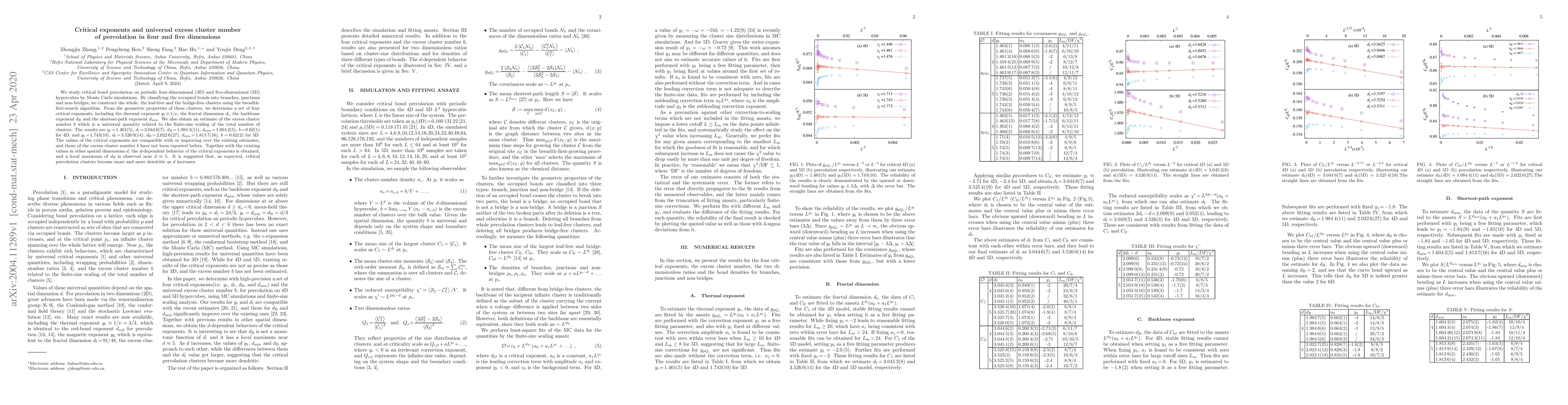 Researchers studied critical bond percolation in 4D and 5D spaces, finding new estimates for critical exponents and the universal excess cluster number, which support a transition to more dendritic clusters with increasing dimensionality.